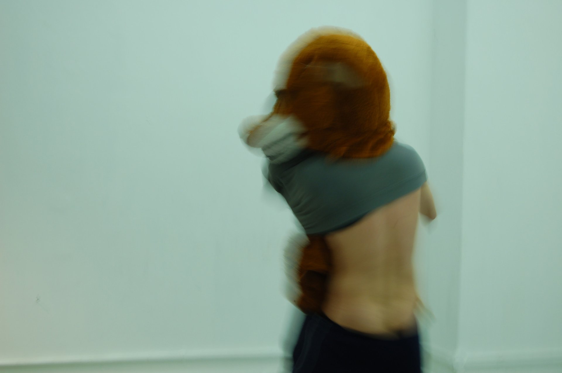 “This was a performance made in collaboration with Sam Hacking when we were both in our final year at the Slade. I would characterise much of my work up until then as being performative, though not necessarily performance. But this was my first actual performance, with solely live elements, a beginning, middle and end, and an audience of our tutors and fellow students. It was a fairly simple work in that it involved two performers—us, incidentally—switching clothes, though one of us was wearing a fancy-dress fox costume, with the one governing rule being that the two performers should not expose any part of their bodies: obviously an impossibility, but an impossibility that inevitably facilitated a drama. I see it now as a sort of template for much of my work since, with its intense physicality, the two characters in a sometimes loving, sometimes sexual, sometimes silly, sometimes rape-like tangle, and an implicit theme of the struggle of relationships.”
