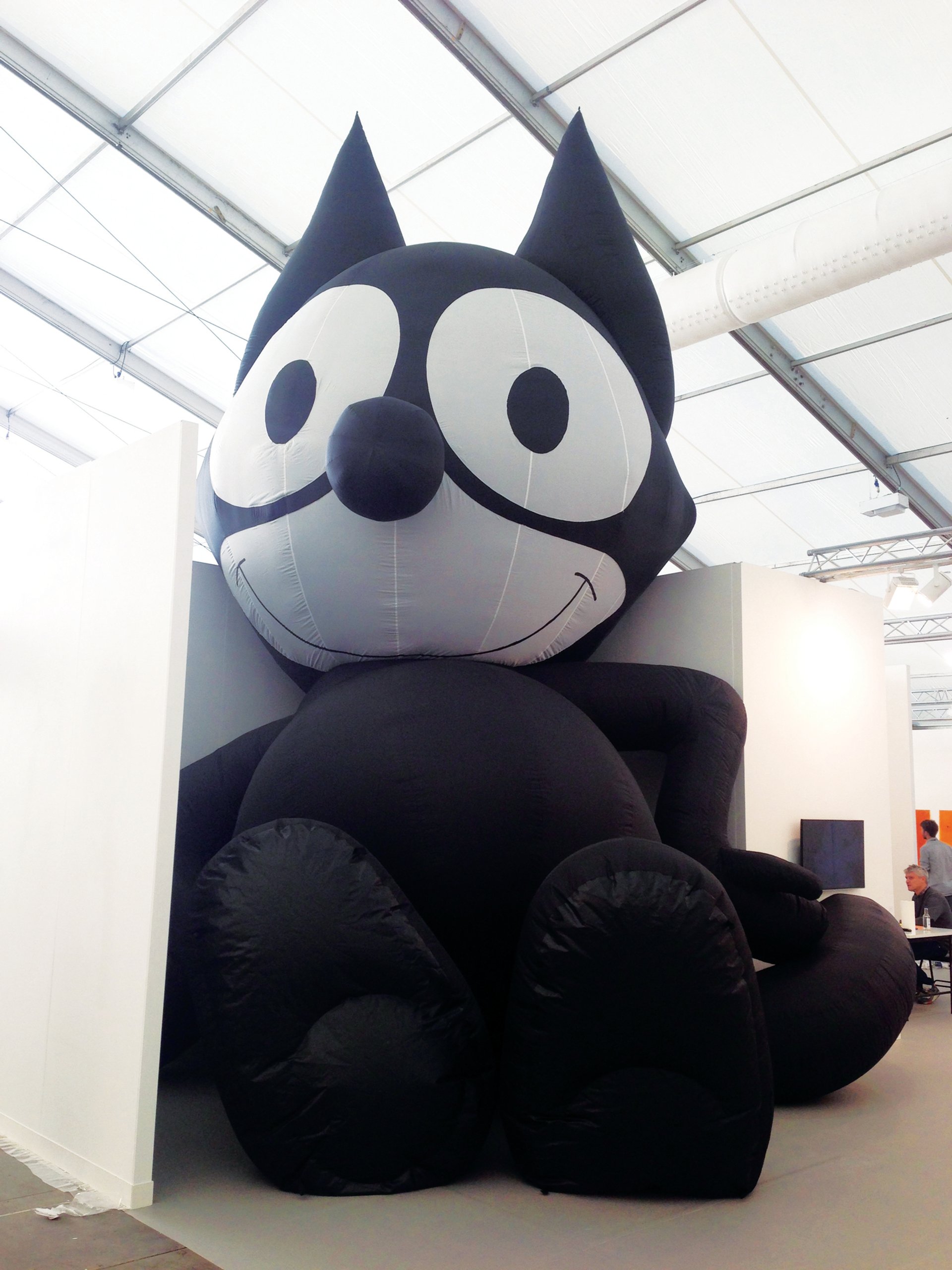 A huge inflatable pussy is making waves at Frieze London. Mark Leckey’s Inflatable Felix (2014) looms over Galerie Buchholz’s stand (D8), with its doe eyes, pointy ears and button nose. Leckey loves Felix and has previously confessed to having a “slight obsession” with the cartoon kitty; at a talk at the Institute of Contemporary Arts in London in 2009, Felix’s face appeared out of the dry ice as Leckey discussed technological developments. But let’s hope the Frieze Felix stands up to scrutiny from his numerous admirers—indeed, a group of Spanish cat-lovers were mischievously pretending to puncture the piece. Fear not, Felix fans, as a gallery spokesman stressed that this is “an exhibition copy; it’s all good.” The work, in an edition of three, has been sold to a private collection in London.