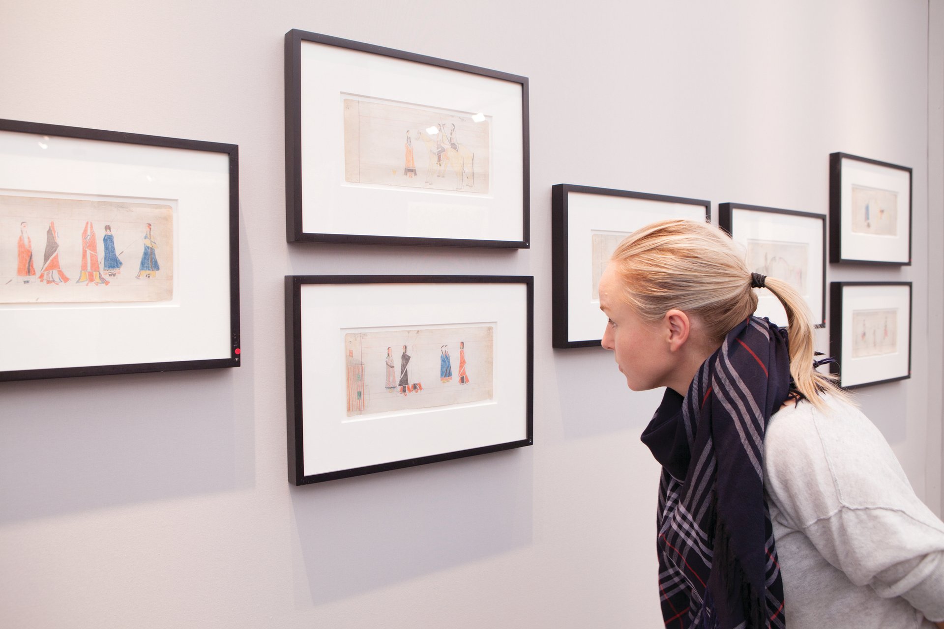 As I understand it, these drawings were made after the Native Americans negotiated settlements with the American government and were forced onto reservations. [When imprisoned at Fort Marion in the period before] they were encouraged to draw their experiences, and then the works were given away. Later, they began to make and sell these drawings themselves. The im age I have chosen has a house in it, but a lot of the pictures depict battle scenes with acts of bravery. All the examples I’ve seen are drawn in the same style, with very little derivation between the different artists or makers. It’s incredibly poignant when you consider the stories; it’s kind of an early art market. A lot of folk art, Outsider art and prison art is based on these unequal power relationships. This is no exception.