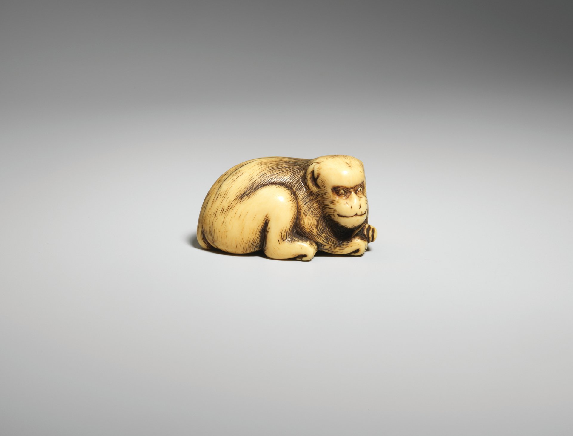 Ivory netsuke of a recumbent monkey (around 1720), unsigned, Kyoto