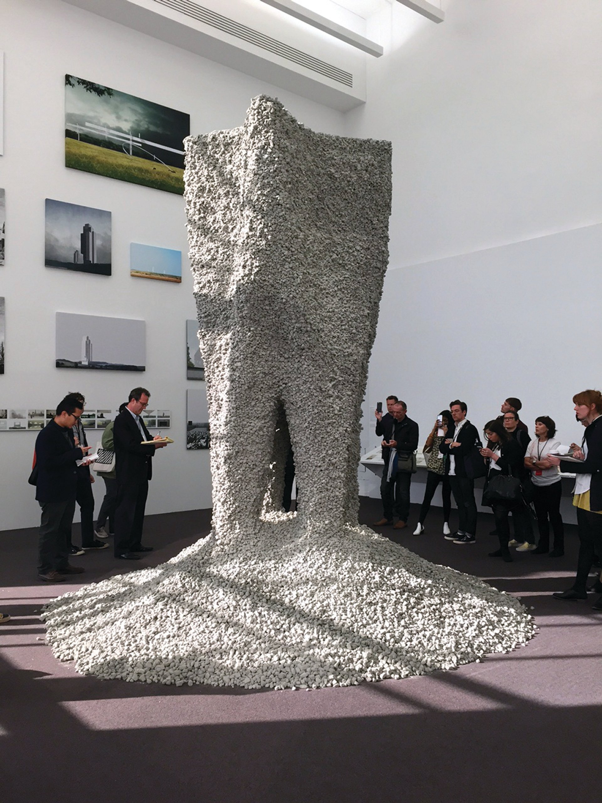 A focus of the biennial is affordable and sustainable architecture. In the main biennial venue, the Beaux Arts-style Chicago Cultural Center, visitors can enter full-scale architectural models built with readily-available materials, such as the airy but cosy plywood home by the Mexican architect Tatiana Bilbao, or the steel-framed hut by the Vietnamese architect Vo Trong Nghia that can be assembled without power tools. But sustainable does not always mean low-tech, as can be seen here in Rock Print, a towering structure built entirely by a robot using stones and string. The piece was designed by the Swiss firm Gramazio Kohler Research and the Massachusetts Institute of Technology’s Self Assembly Lab.