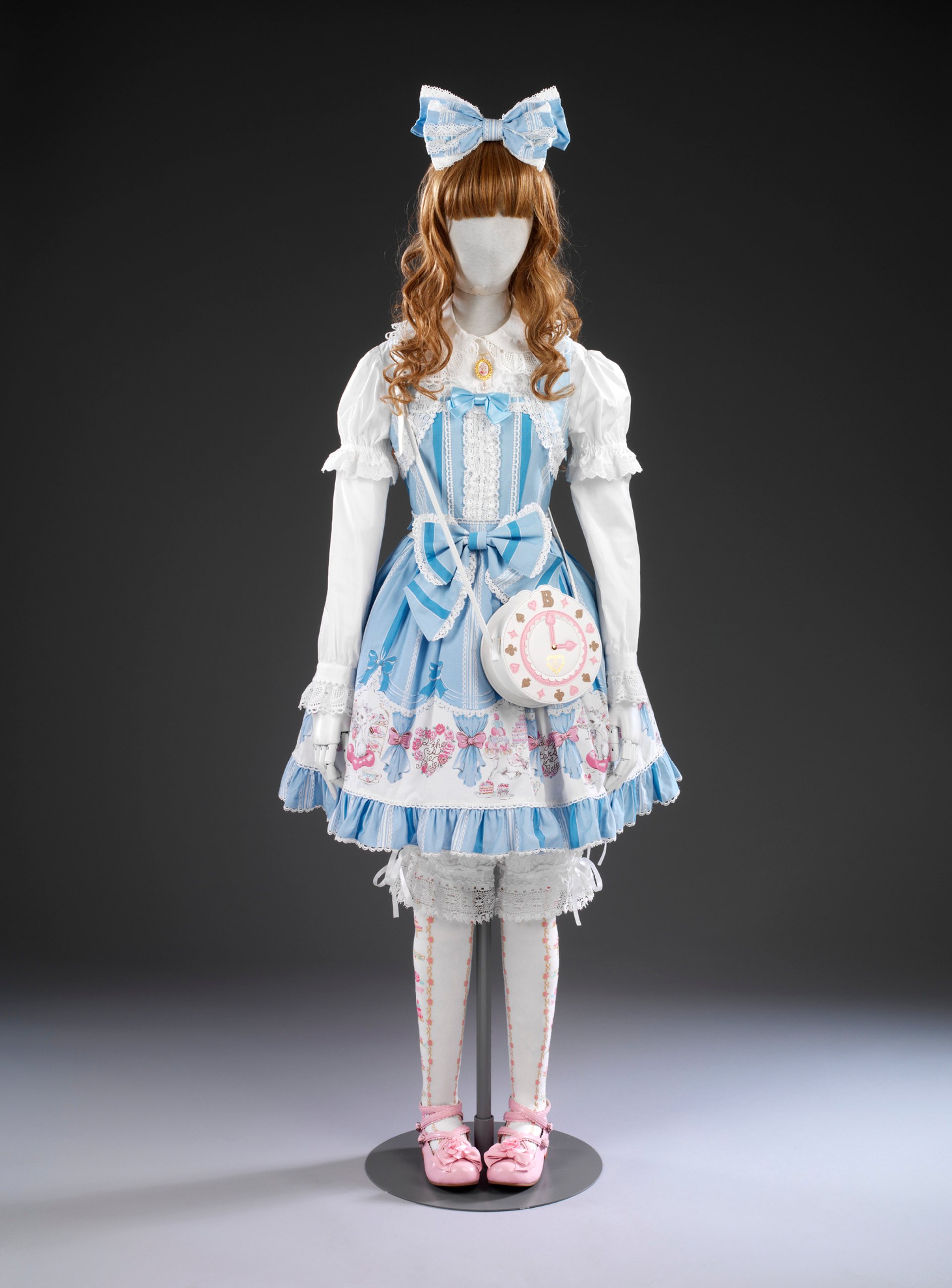 “The Lolita ensemble references Alice in Wonderland. Indeed, Victorian children’s literature is big in Japan. It’s a hyper-feminine object that could be considered a feminist symbol in Japanese society which is male-dominated,” Faulkner says.