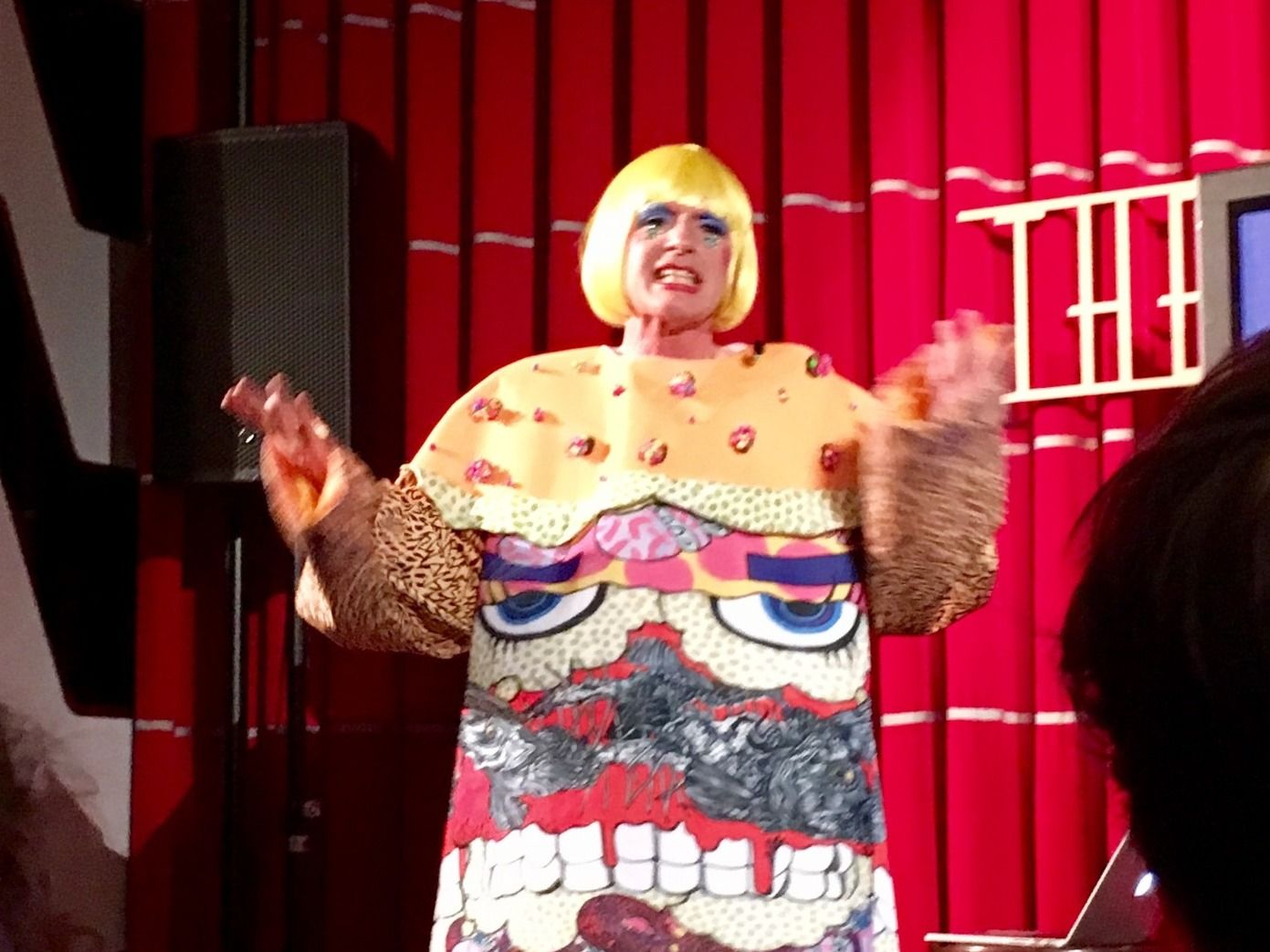 There was something for everyone at The Age I Don’t Remember, the all-singing, all-dancing performance by hyper-energetic rising star, Nástio Mosquito, which played to a packed crowd at the ICA, London, on Friday. The charismatic Angolan artist—who was joint winner of the Future Generation Art Prize 2014—transformed the ICA’s theatre into a steamy, disorientating and cacophonous environment dotted with live musicians, video projections and, of course, the irrepressible Mosquito himself. The artist amply lived up to his name by frenetically buzzing back and forth through the audience, simultaneously declaiming and gyrating, and assuming multiple personalities ranging from the prophetic to the profane.