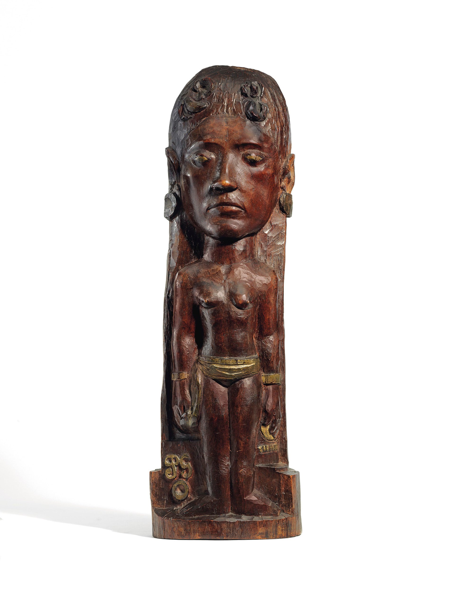 The third-highest lot of the evening, a rare carved wood sculpture by Paul Gauguin, Thérèse (1902-03) attracted three telephone bidders before selling for $31m (est $18m-$25m). The dealer Andrew Fabricant was the underbidder in the saleroom and said he was "disappointed on many levels because we're not going to get another one like that again, it's perfect." He described the rest of the sale "all over the place".