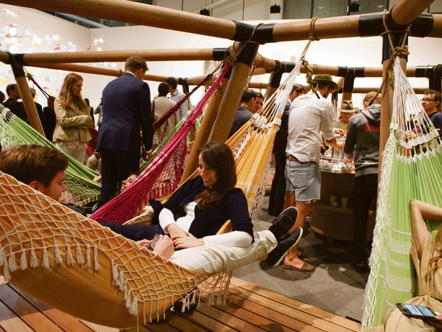 This is, however, still Miami. Much of the serious-minded work is easy on the eye: Neugerriemschneider’s stand (C15) includes trademark works by the Chinese activist artist Ai Weiwei and the ecologically minded Olafur Eliasson. At Magazzino (K10), a work by Vedovamazzei titled United Nothing (2015, edition of three, $17,000 each; one sold yesterday)—an enlargement of graffiti from 1990s Sarajevo—shows the artist duo’s way of “dealing with politics, but in a light way”, says the gallery’s Gabriele Gaspari.