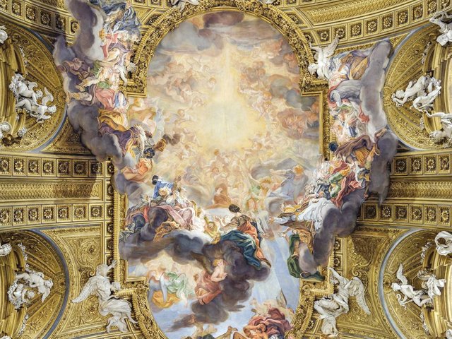 Buccheri examines the various solutions developed by his followers and she sees Giovanni da San Giovanni’s Glory of Saints (1623) in the Basilica dei Santi Quattro Coronati in Rome as the best answer. Giovanni achieves the difficult balance of clarity and naturalistic foreshortening. Buccheri highlights the influence of complex stage design here, where figures from multiple cloud zones interact, and some cloud layers in the centre appear to be rising towards God.