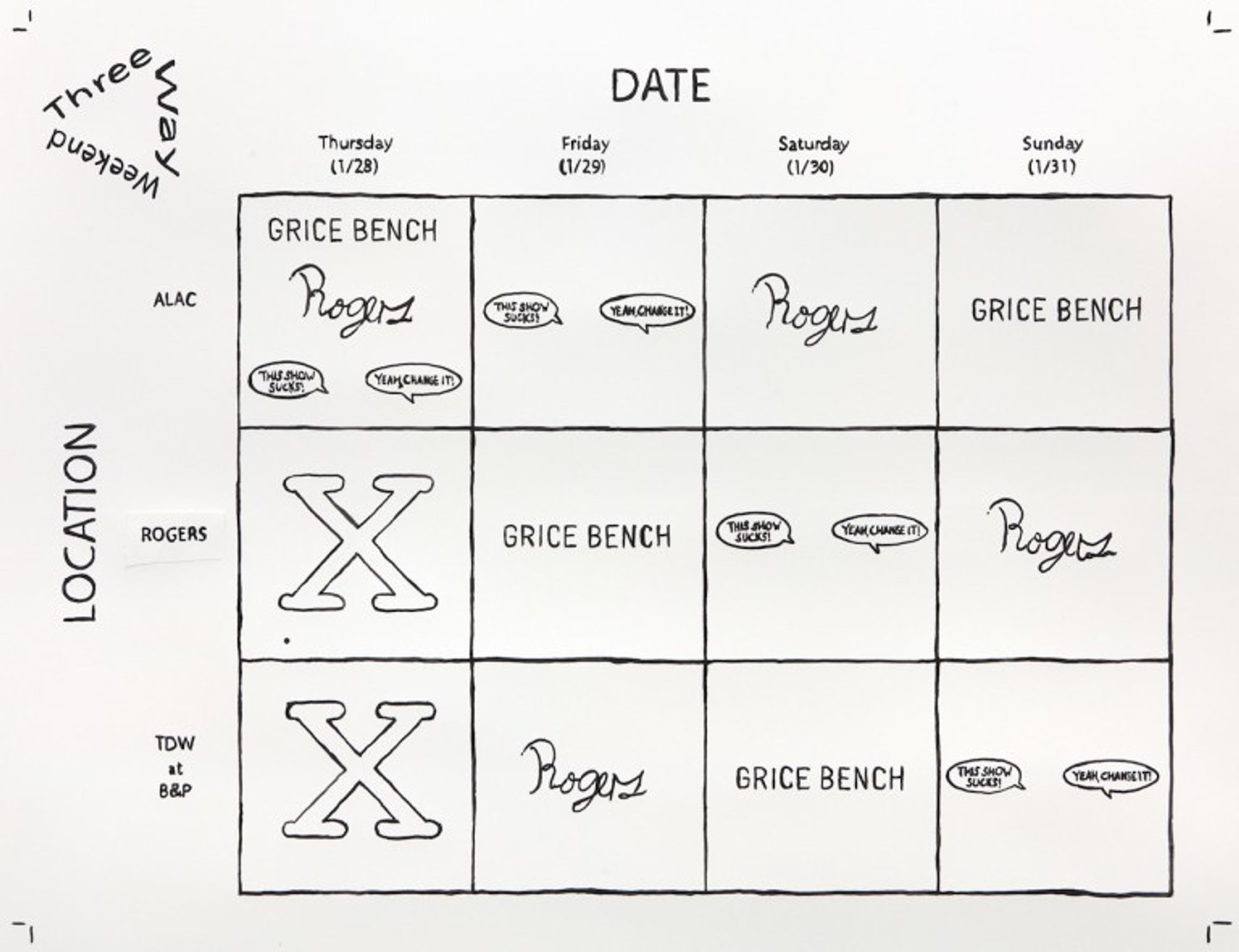 Muller, who has been hosting his music-fuelled exhibition-events known as Three-Day Weekends at Blum & Poe, calls this one a Three-Way Weekend, and the project has more permutations and combinations that just about any ménage à trios could.