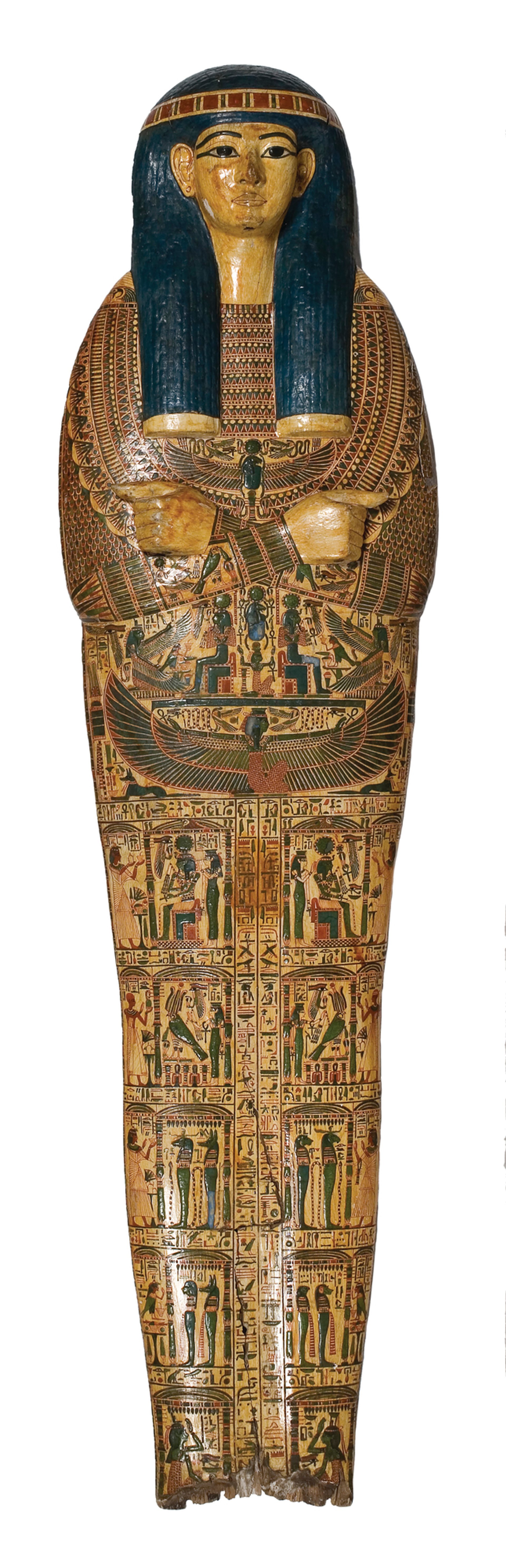 The coffin se t was donated to the museum in 1822 and is one of its earliest Egyptian acquisitions. Nes-Amun, who lived some time around 1,000BC, held various supervisory positions at the Temple of Amun-Ra at Karnak—a plum post at the time. “His coffin gives us a sense of a man who was clearly very proud of being a member of that team and one who didn’t skimp on quality,” Strudwick says.