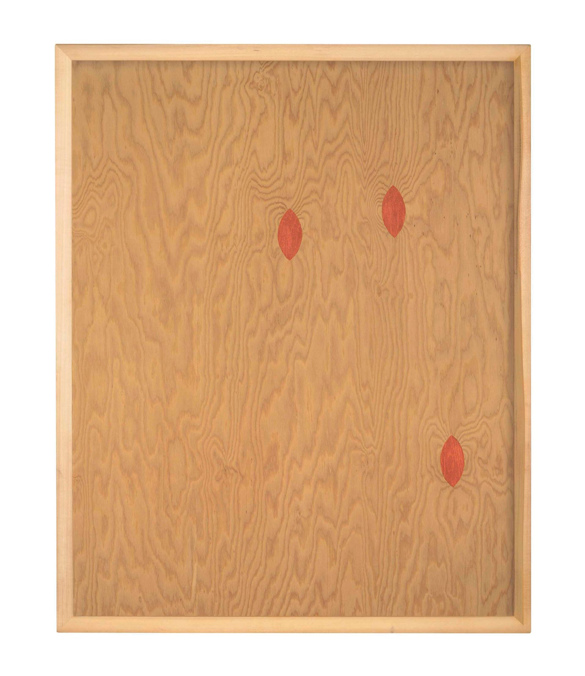 These barely painted “not paintings” are one of her more aggressive assaults on the idea of authorship. She highlights the plugs inserted in to each panel that are meant to hide the wood’s natural flaws.