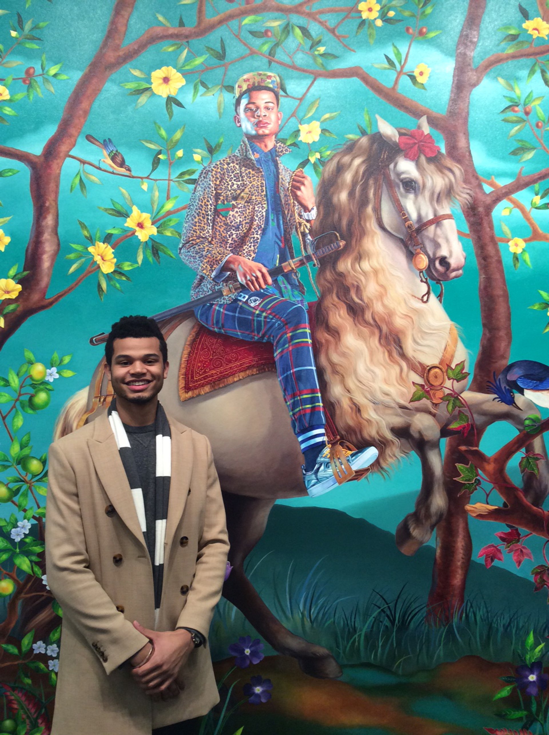 Sean Kelly (Pier 94, 501) The artist Kehinde Wiley typically discovers his models on the streets of New York, but for his newest painting—finished in Sean Kelly’s booth the night before the Armory Show opened to VIPs on Wednesday—the painter picked Niles Luther, a strapping young cellist who Wiley saw performing with the Harlem Chamber Players at the opening of his Brooklyn Museum retrospective last year.