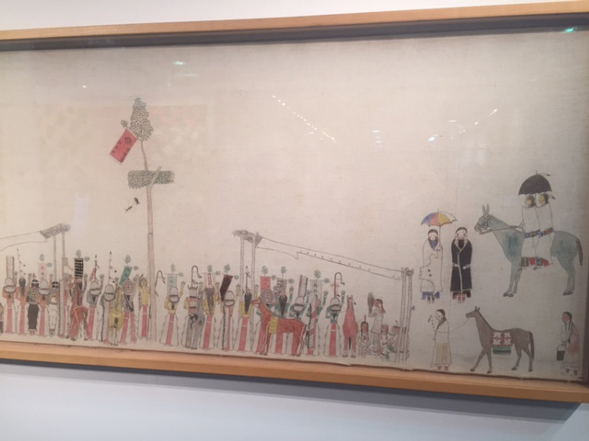 Made by an anonymous artist from the Lakota (Teton Sioux) Northern Plains tribe and dating to around 1895, the painting depicts a crowd gathered for the grueling spiritual ceremony known as a Sun Dance. Ellis said the piece, priced at $275,000, is “the finest example of its type”, pointing out the way the earthy colours “expand across the surface” of the muslin. — Rachel Corbett