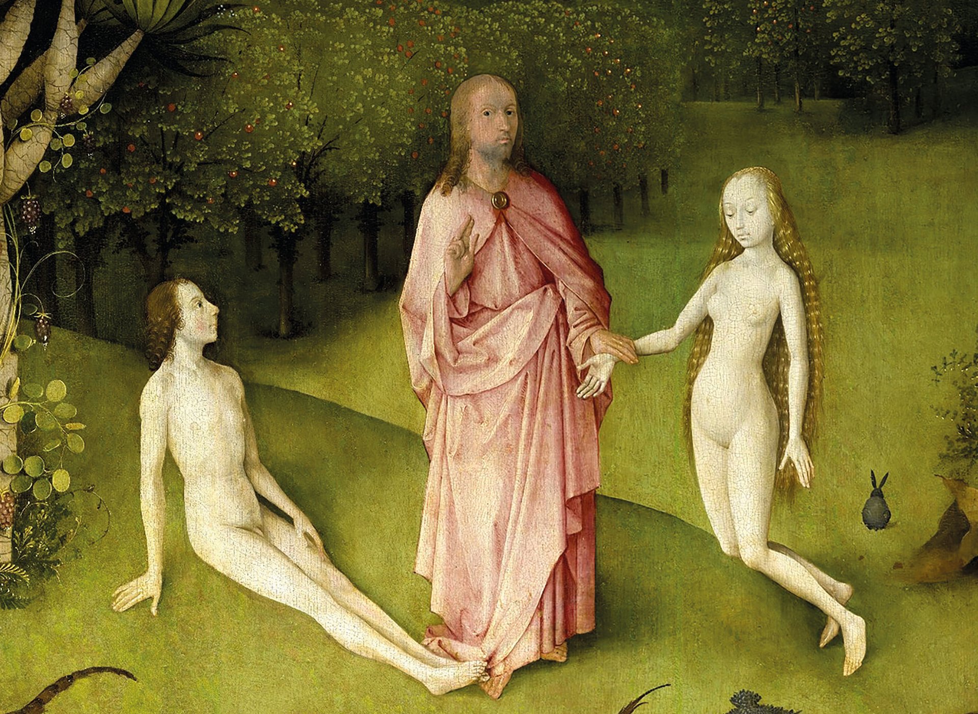 The triptych presents a succession of four related views. The creation of the world up to the third day decorates the triptych’s two exterior doors; Paradise and the presentation of Eve to Adam is on the left wing; the central panel depicts the false Paradise of humankind before the Flood; and the right wing features Bosch’s terrifying depiction of Hell.