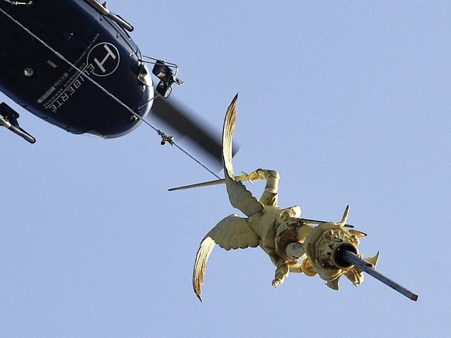 The 19th-century statue of the Archangel St Michael was helicoptered from its perch, 156m above the abbey Mont-Saint-Michel in Normandy, on 15 March so it could be restored. The €450,000 project is part of a larger €7m programme financed by France’s Centre des Monuments Nationaux to preserve the island abbey-fortress, which has been a Unesco World Heritage Site since 1979. Since 2013, repairs have also been made to the roof and the stained-glass windows of the Medieval abbey.