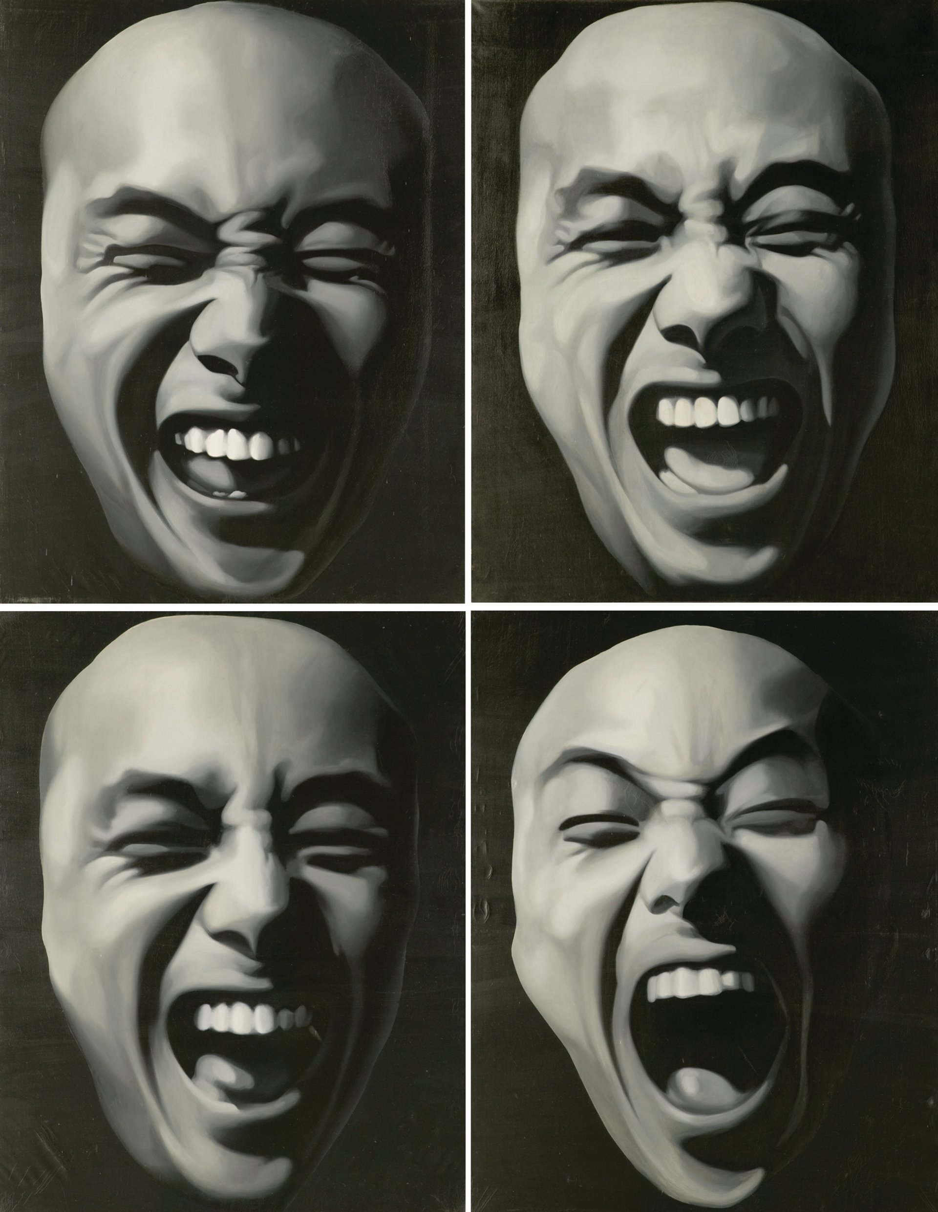 In these portraits, which resemble a series of photographic images taken in slow motion, Geng Jianyi analyses human expression by breaking down the act of laughing into four stages. His technical approach reflects a rational re-examination of the passions of the 85 New Wave. Geng co-founded the Pond Society in 1986, and co-organised the 85 New Space exhibition with Zhang Peili.