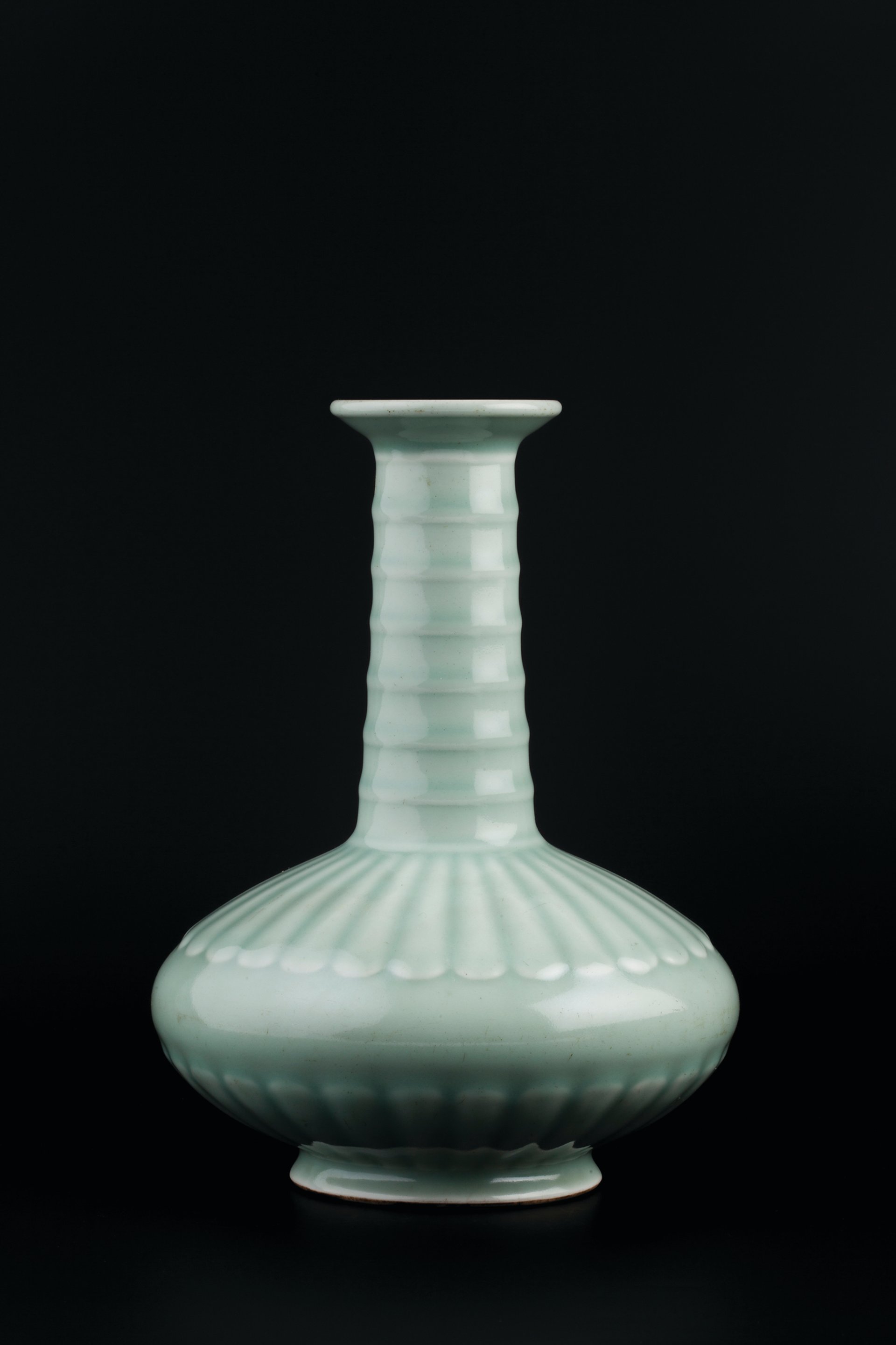 In the 1950s this Yongzheng mark and period porcelain vase (1722-35) was valued at just £12-£15 by its owner, Charles George, an art and antiques collector who kept a meticulous handwritten inventory of his purchases. Now consigned to auction by George’s family, it has an estimated price of between £20,000 and £30,000. Typical of the restrained ceramics of the period, this 24cm-tall celadon-glazed vase was made when the Yongzheng emperor personally oversaw the introduction of new forms and colours at the Jingdezhen kilns. The vase is inspired by a Longquan prototype from the Southern Song period, with bands of chrysanthemum petals at the base and ribs imitating bamboo around the neck.