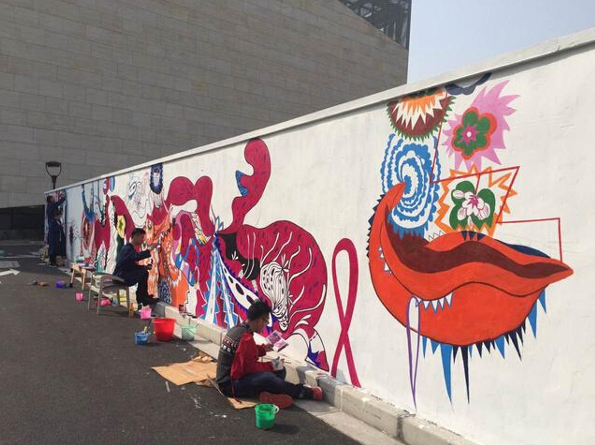 The new venue has six exhibition halls, two for temporary shows and four to display the permanent collection. As well as more than 900 works by Liu Haisu, the museum holds traditional masterpieces including Guan Tong’s Living in Seclusion amid Mountains and Rivers (Song dynasty), Qiu Ying’s An Autumn Hunting Expedition (Ming dynasty), and Bada Shanren’s Peacocks Perching on Rocks (Qing dynasty). The new building also has shops, lecture halls, art storage warehouses and a library. The museum’s exterior includes a 300-metre-long graffiti wall, with works copied with permission from established artists by art students from Shanghai University.