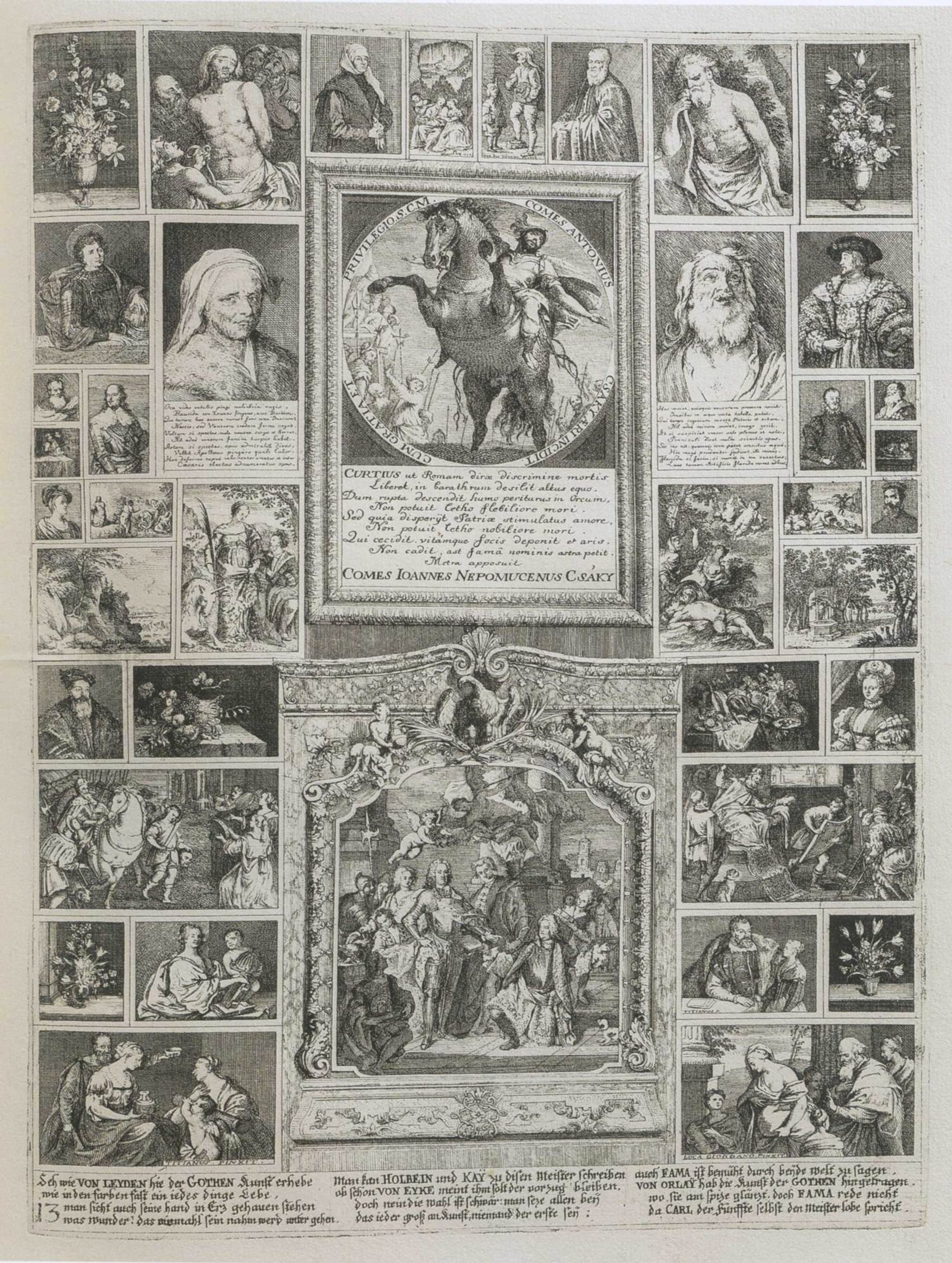 As in other spheres, debt and cost never deterred princes from competing with one another. The Emperor Charles VI also intended to publish a 30-volume Galeriewerk of the Habsburg art collection. The imperial holdings (including those in Archduke Leopold’s collection) were gathered up and assembled in 1728 in the Stallburg, the former stables of the Vienna palace, arranged in the Baroque manner. The publishing project was never completed, but the Prodromus, a kind of preview of what might have been, was compiled in 1735: miniature tableaux synoptically displayed more than 1,000 paintings.