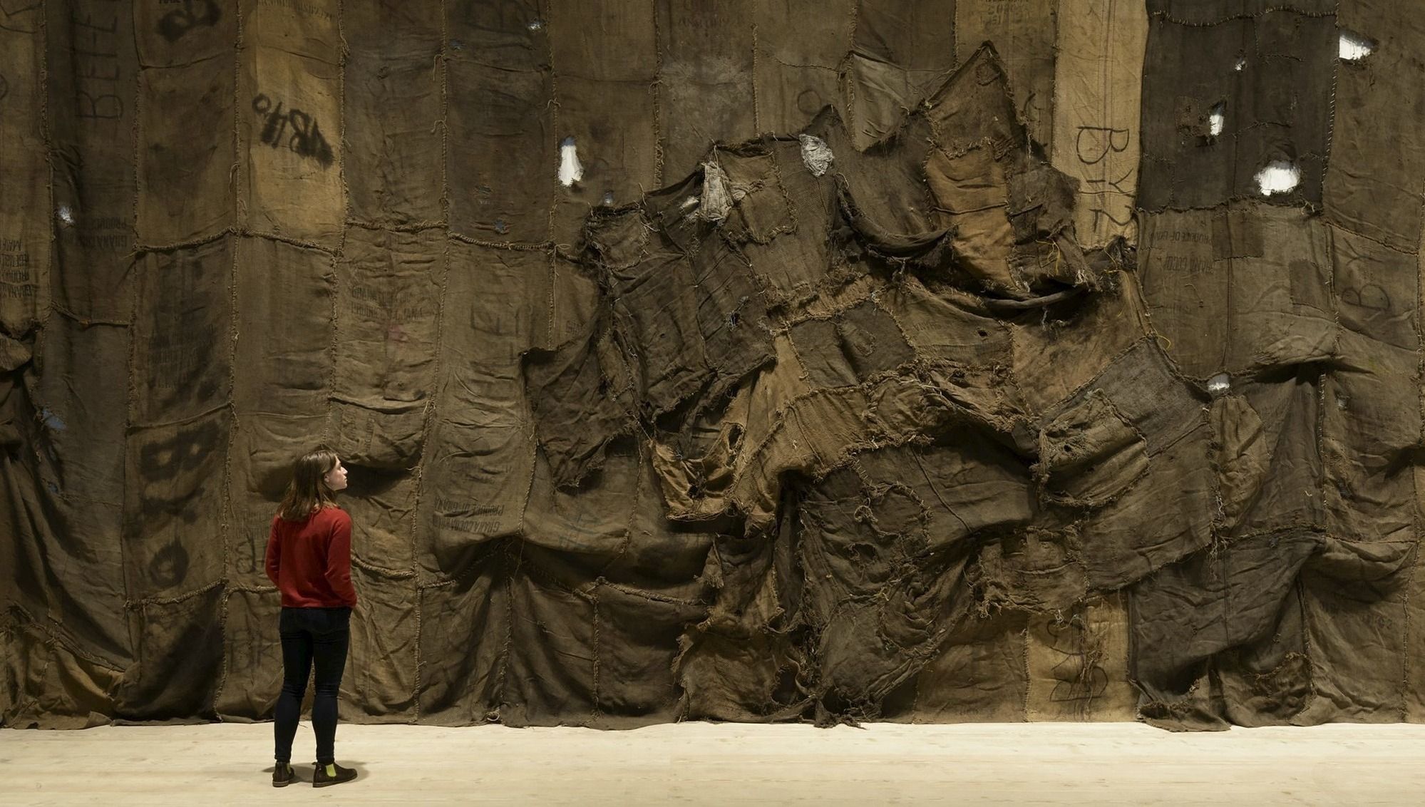 The row centred on six lots of jute sack material, which Mahama sold to Simchowitz and Ellis King for £90,000 in 2013. The artist repurposes the coarse brown sacks that are used to transport coal in Ghana, stitching them together to create tapestry-like installations.