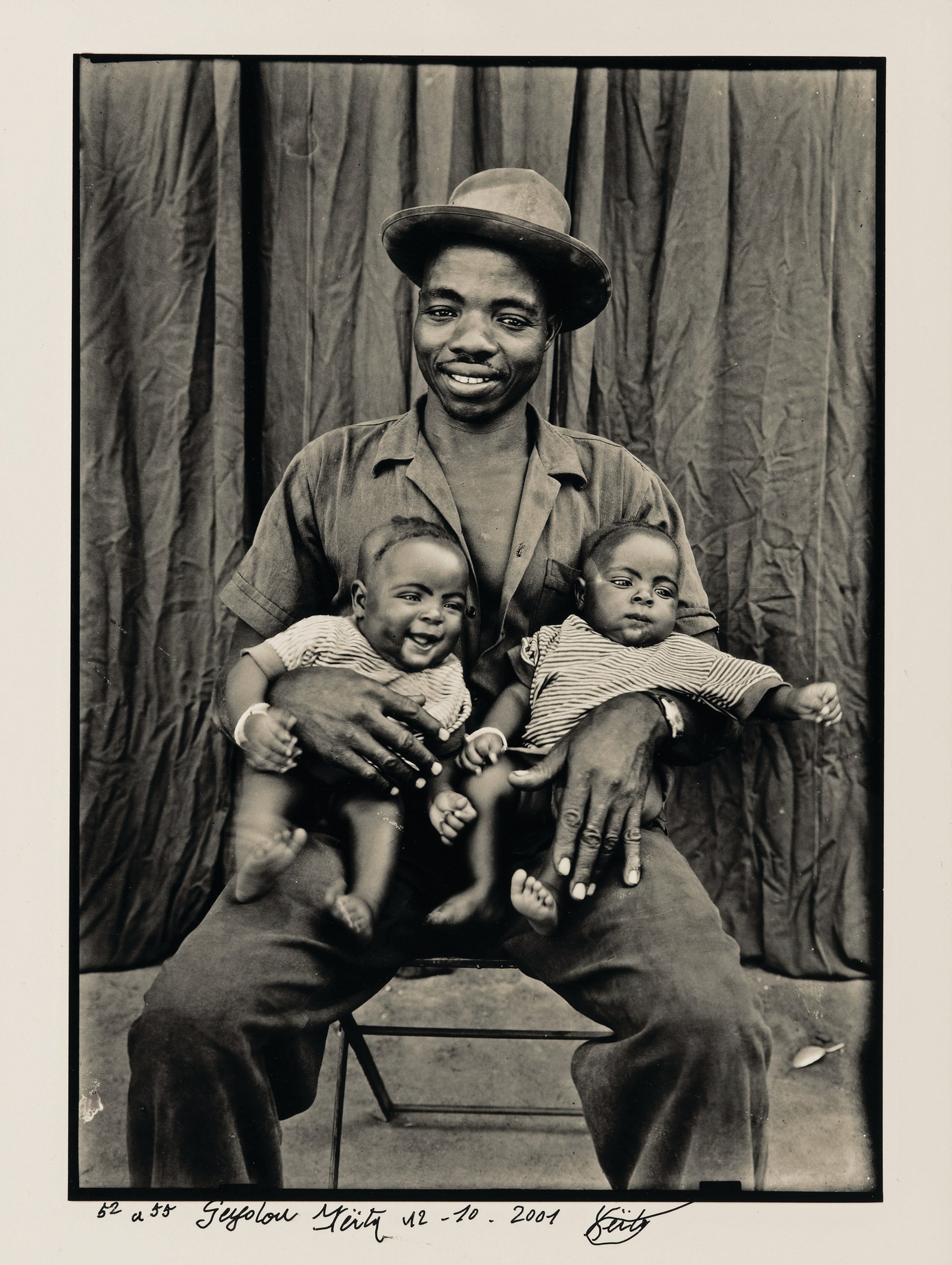 Since his archive of more than 10,000 negatives came to light in the 1990s, Mali’s master photographer Seydou Keïta has belatedly achieved international recognition. Born in 1921 in Bamako, he began earning his living from the medium in 1939 as a self-taught teenager. Between 1948, when he opened his studio in the capital, and 1962, when he became an official photographer for the new Socialist government, Keïta built a reputation across West Africa for his stylish 13cm x 18cm black-and-white portraits. With carefully choreographed lighting, backdrops, costumes and props, these were designed to flatter his middle-class clients, and have since come to be appreciated as works of art. More modest than many of Keïta’s compositions, this view of a young working man holding his wriggling twin sons is among almost 300 photographs in the major Seydou Keïta exhibition at the Grand Palais in Paris (until 11 July). The larger 40cm x 30cm print was produced in 2001, the year Keïta died.