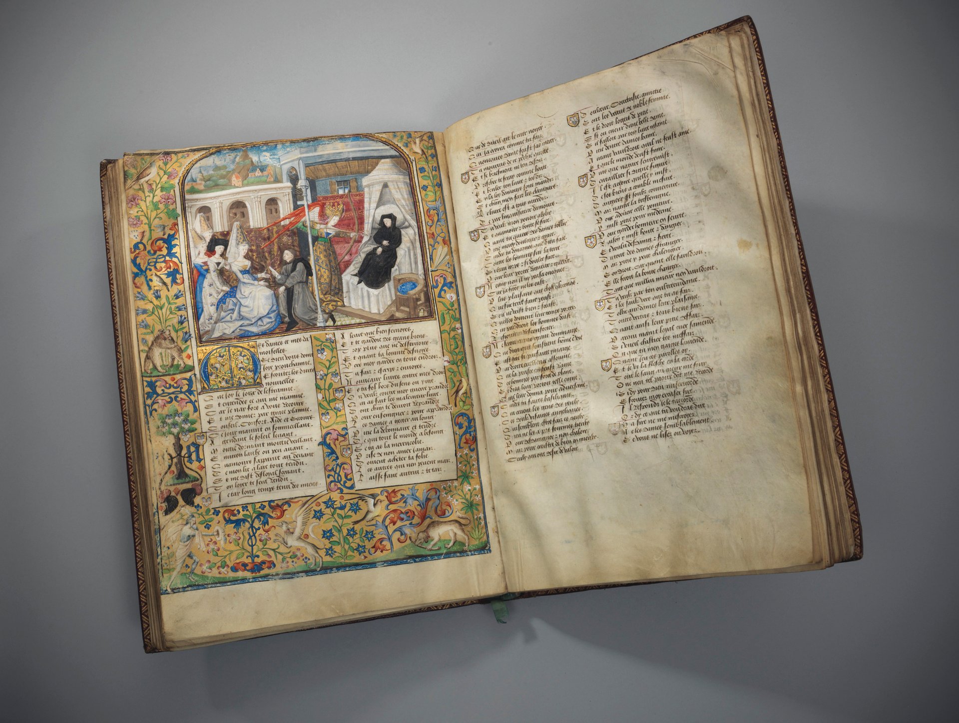 Almost 40 sacred and secular manuscripts from the eclectic collection of the Alsatian tobacco magnate Maurice Burrus (1882-1959) will appear in public this month at Christie’s, for the first time since he acquired them in the 1920s and 1930s. The specialist Kay Sutton says the sale, which includes prayer books, tales of courtly love and humanist texts, “ticks all the boxes”, combining beautiful illuminations, fine early bindings, market freshness and historical provenance. Two pieces were owned by Antoine de Bourgogne, “le Grand Bâtard”, the illegitimate son of the duke of Burgundy. The Clumber Park manuscript contains poems by the influential late Medieval writer Alain Chartier, and courtly and allegorical scenes by the Dunois Master, a leading illuminator active in Paris in the mid-15th century.