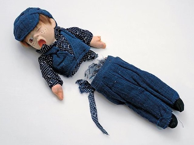 From the basement to the top floor of the museum there are visual surprises and thought-provoking works. In the grand Court Room, Parker has installed Gavin Turk’s grotty sleeping bag, Nomad, beneath Hogarth’s 1746 painting of the young Moses before the Pharaoh’s daughter. Among her own works on show is a toy doll of Oliver Twist that she severed in two with the guillotine said to have executed Marie Antoinette, the French queen who could not resist adopting children even though she had four of her own. (Only one survived the Revolution.) Shared Fate (Oliver) (1998) speaks of the violence of a painful separation between mother and child as do the historic tokens left by desperate women who were forced by circumstance to hand over their infants. They hoped against hope one day to be reunited with their children, the majority illegitimate, like Charles Dickens’s young hero.