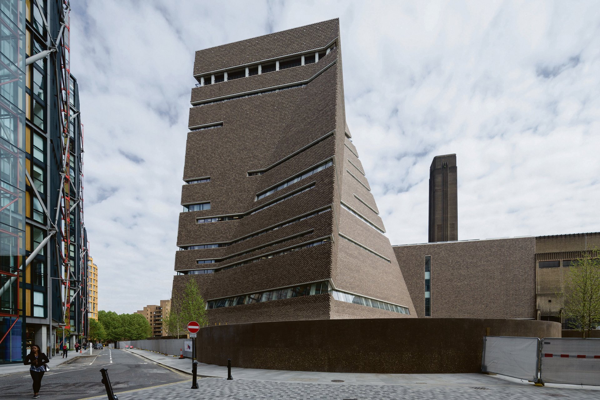 Tate Modern extension, London, 2016 The building was originally planned to be a glass and steel ziggurat, but the architects opted for brick cladding for the south tower. The extension to the former power station houses three floors of galleries, education spaces and the Tanks in the basement for live art.