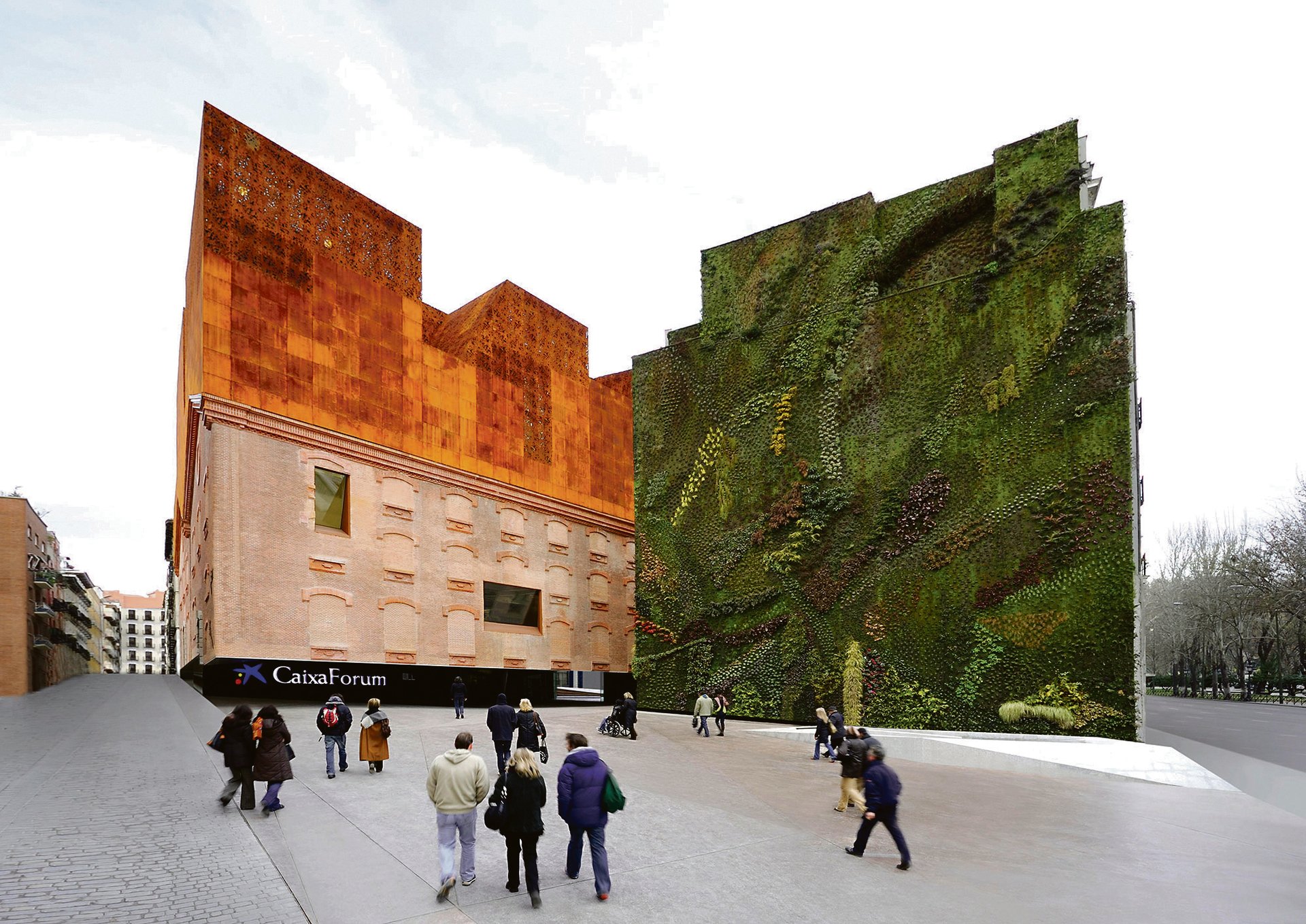 CaixaForum, Madrid, 2008 Like Tate Modern, the CaixaForum in Madrid is a former power station converted by the architects into a memorable space for art. Retaining the building’s red brick shell, Herzog and De Meuron added space above and below ground, as they did on London’s Bankside for the Tate.