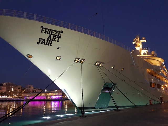 New York’s Mitchell-Innes & Nash gallery kicked off Art Basel’s Unlimited section last night (13 June) with a new performance by Pope.L, the US artist who tackles issues of race and angst across a variety of media. When asked about the reactions he expected from the crowd, he said: “Thoughtfulness,” adding: “I suppose people throwing things might be okay. I can defend myself. I’m not a beast without a mission.” Pope.L debuted The Problem (2016) by throwing white plantains from the window of a white limousine on the Messeplatz before emerging, holding a white umbrella and wearing a white gorilla costume. He then dashed inside, swiftly followed by photographers and videographers. “I’ve committed to just chasing after him like an idiot at this point,” said someone who works at the gallery. “Finally, a good piece of performance art,” said a critic, mid-sprint, whom we’d seen earlier at a different performance. The gorilla stopped at other popular stands before arriving at Mitchell-Innes & Nash’s stand, where he peeked behind some of his paintings. There, before a crowd of art-world heavyweights who’d clearly been told to be there for the climax, he found stacks of €100 bills. He gathered them up and sprinted back to the limo, squeezing himself, at the entrance, past the dealer Jeffrey Deitch, who showed no reaction to any of this whatsoever.