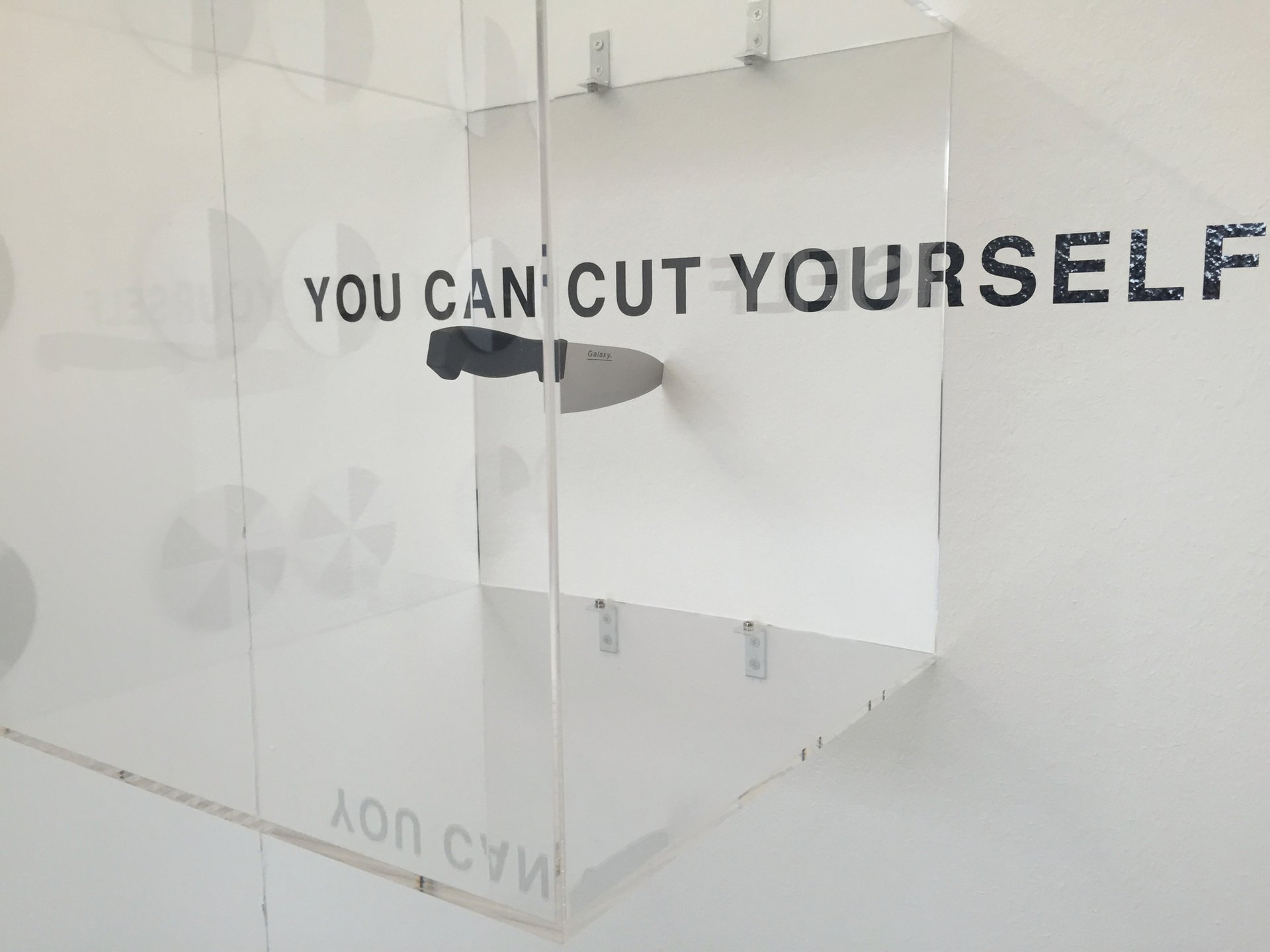 Cutting-edge fair Hopefully, the fragile of psyche will not be encouraged to do anything rash when they visit Tokyo’s Aoyama/Meguro gallery at the art fair Liste, where one of the interactive pieces in the solo show of works by Satoshi Hashimoto suggests that “you can cut yourself”—and provides a lethal-looking knife for the purpose. Visitors are also greeted by a provocatively noose-like rope that hangs in a doorway, its function left up to the imagination. Certainly many art-worlders might benefit from the roll of black duct tape that comes with an invitation to “cover your mouth with tape”, while there have already been many (including the artist) who have proved willing and eager to engage with the wooden block emblazoned with “push me down/stand me up”. If a cry for help is what you’re after, the resounding crash resulting from following the first command guarantees everyone’s undivided attention.