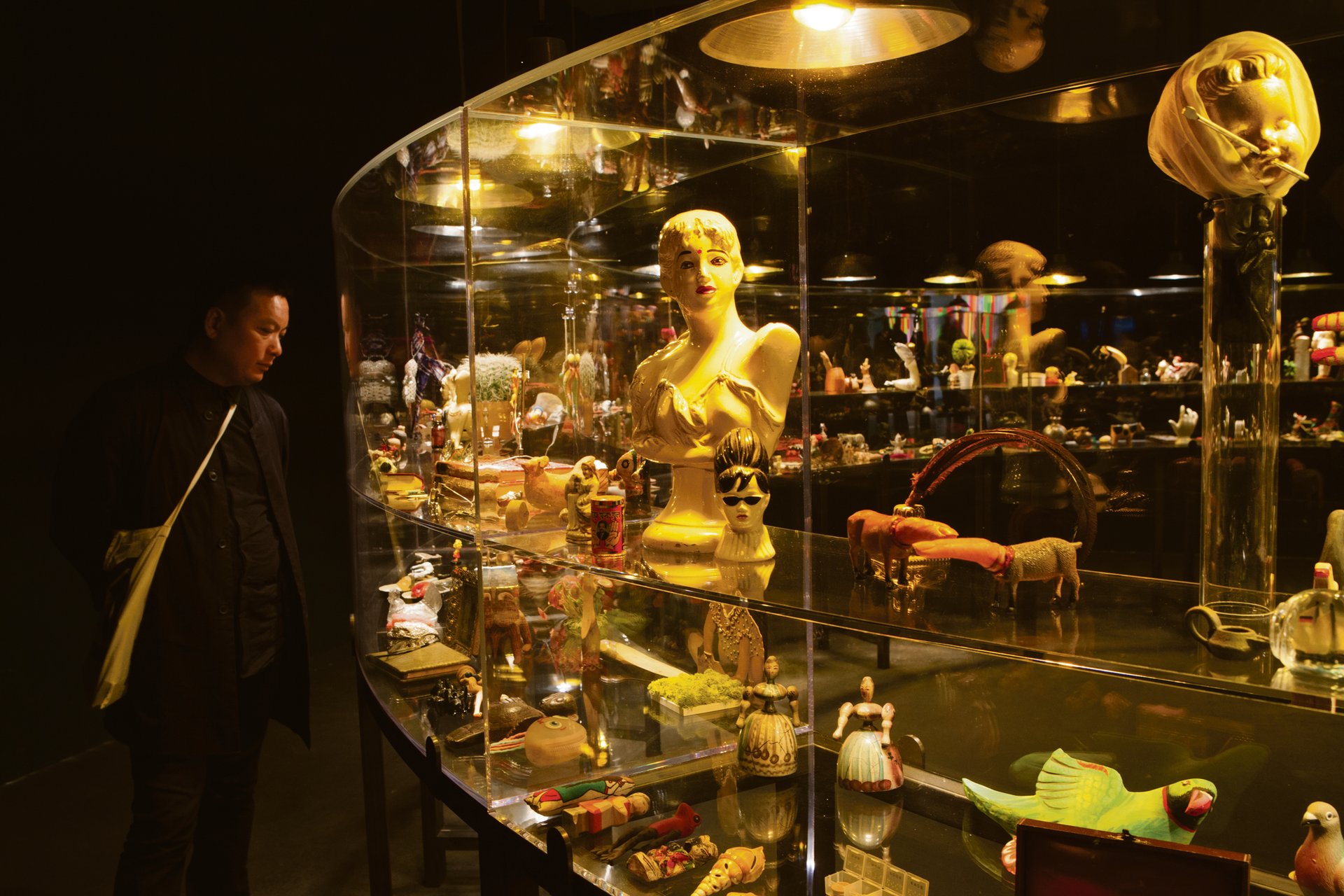 Mithu Sen, MOU (Museum of Unbelongings) (2016) “There are three female Indian contemporary artists in the show this year. This work is comprised of [Mithu Sen’s] collection of fetishes, curios and souvenirs, much in the tradition of the cabinet of curiosities. Basel has beautiful cabinets of curiosities because it has such an old university and has a long history of collecting. In India, the artist was unable to show this work in its entirety because of its allusions to homosexuality, religion, mixed marriage and all kinds of matters that are impossible to speak about publicly. When she had an offer to show a redacted version, she turned the curator down, saying that it would be like cutting off one of her arms. This work is an exhibition within an exhibition, almost like a Russian doll.”