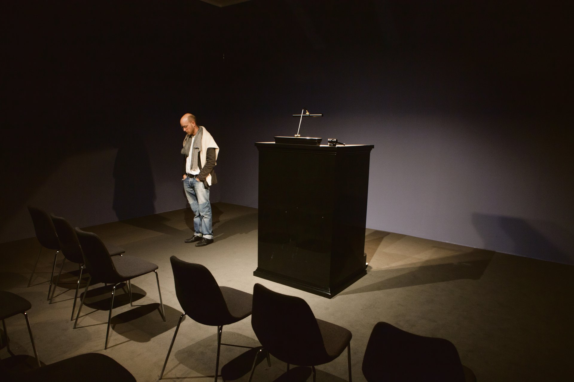 Elmgreen & Dragset, Secondary (2015) “This piece shows a mirrored auction room with two auctioneers bidding in parallel. It is titled Secondary, which is a reference to the secondary art market. Auctions have become a form of entertainment; there’s an excitement around them. They have a formula that pops up in movies and novels; everybody knows what it feels like to be in an auction. But, like in Hans Op de Beeck’s work, all the colours and imagery have been left out, which in turn triggers the images that we have stored in our mind. At a time when auction records keep being broken, this work seems very timely. It also addresses the relationship between secondary and primary. Unlimited is a platform for sales, but it’s a primary one—so here the secondary is infiltrating the primary.”• Galería Helga de Alvear (Madrid)