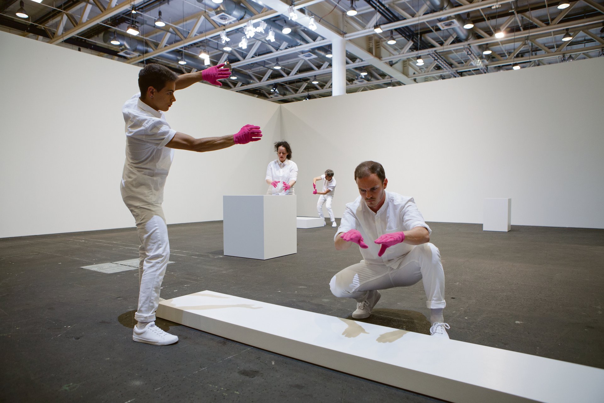 Davide Balula, Mimed Sculptures (2016) “Around 20% of the works in Unlimited are new productions and this is one of them. There are seven ‘sculptures’ on show—by artists including Henry Moore, David Smith and Louise Bourgeois—but they’re invisible as long as they’re not activated by the hands of mimes. The work draws on the theories of two art historians: Herbert Read and Clement Greenberg. The artist did a huge casting for the mimes, and there was lots of training involved. They are dressed in white and wear pink gloves, which really emphasises their hands. The market for performances is still quite difficult: production is costly and prices are still very reasonable.”