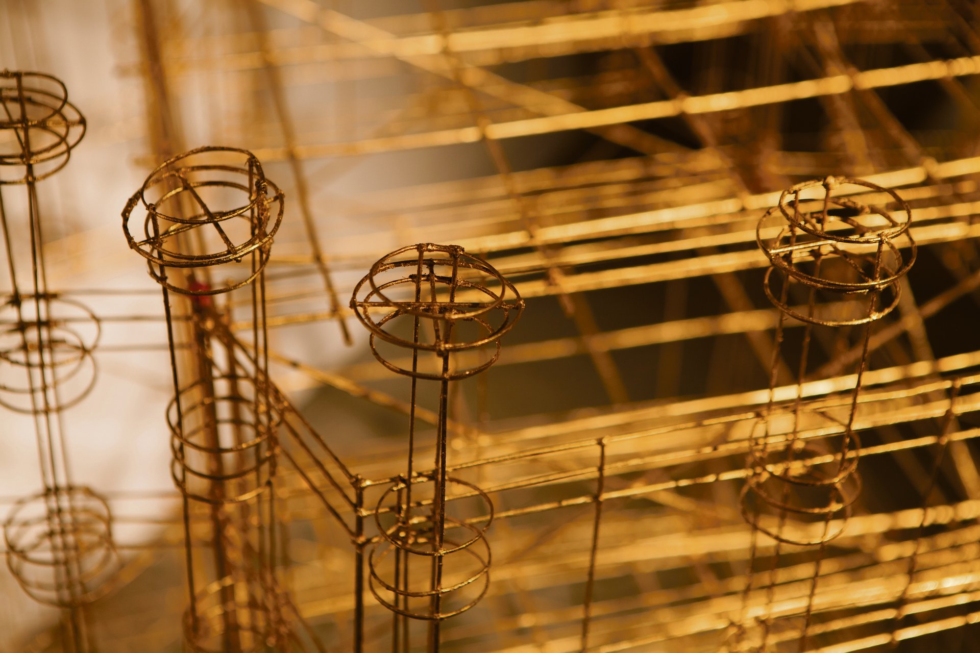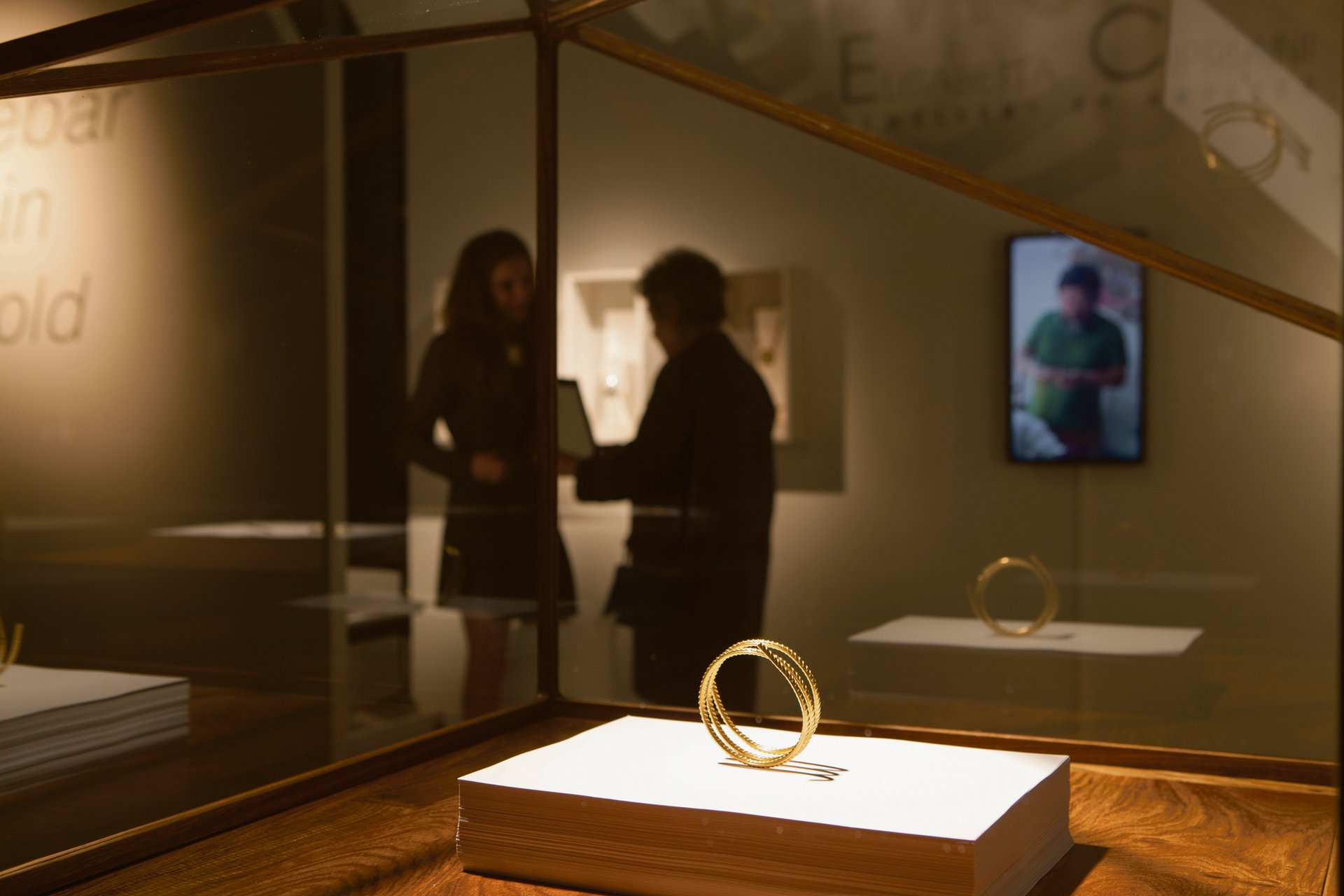 Ai Weiwei, Rebar in Gold (2013) The 2013 collection of delicate, 24-carat gold jewellery by the Chinese artist Ai Weiwei refers to one of his most emotionally and physically weighty works, Straight (2008-12). The installation of 90 tonnes of straightened steel rebar, salvaged from the ruins of the 2008 Sichuan earthquake, commemorates more than 5,000 school children who died in the disaster. Rebar in Gold—shown by Elisabetta Cipriani, a London-based dealer in artists’ jewellery, in Ai’s vitrines of Chinese huali wood—invites the wearer to twist a 20cm or 60cm length of soft gold into a bracelet. Each hand-cut length is unique and comes with a certificate of authenticity.