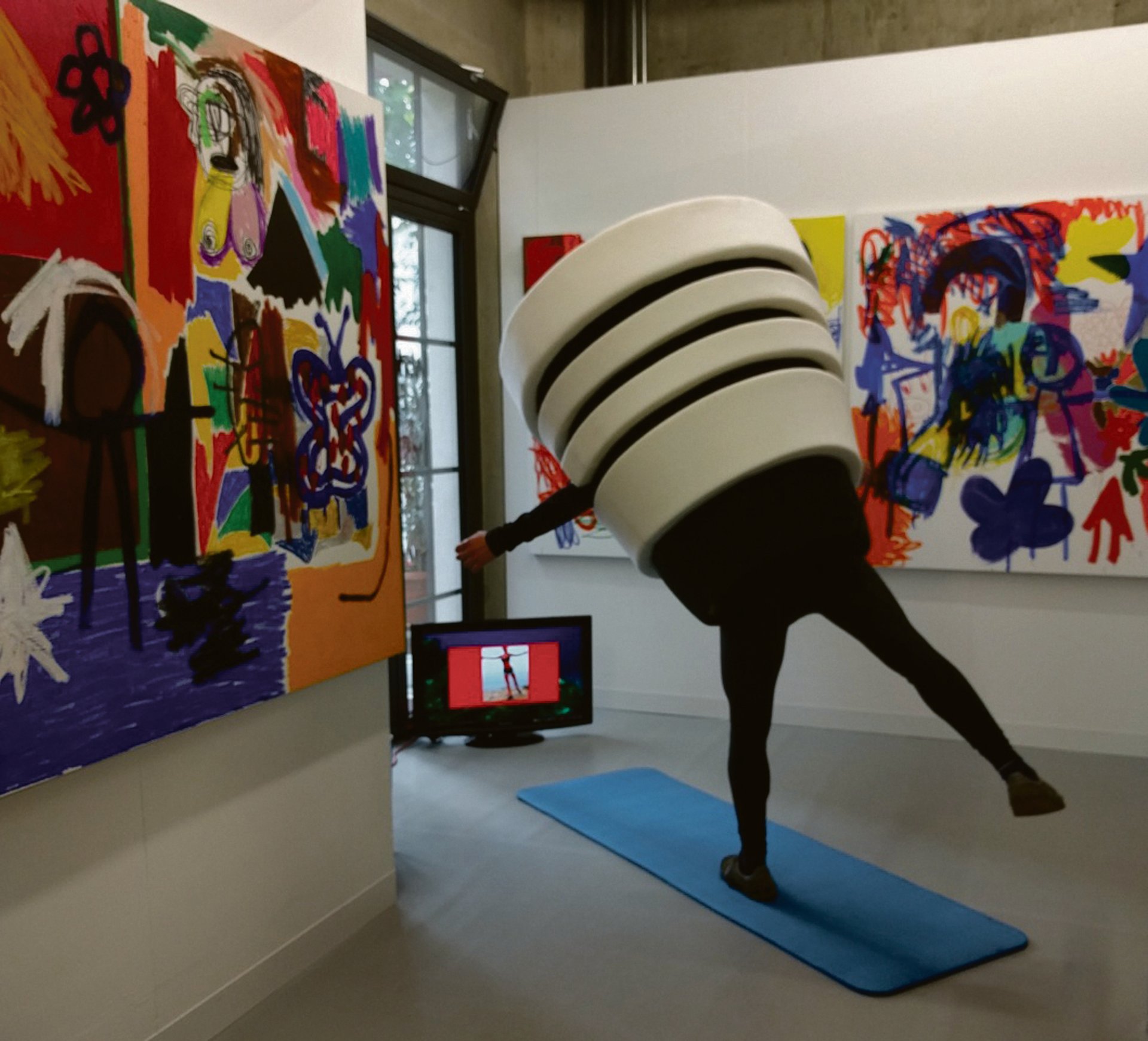 W-w-w-work it out Visitors passing The Breeder’s stand at the Liste fair this evening (5pm-6pm) will be treated to the surreal sight of a two-legged Guggenheim museum performing a routine to an exercise video by the supermodel Cindy Crawford. Meanwhile, a pink rabbit and a giant banana paint words on to the windows to the point of illegibility. All this frenetic activity is the work of the Athens- and Los Angeles-based artist Jannis Varelas. The piece is called Couple of Steps Towards Socialism—a wry comment on our fixation with activity, regardless of whether it achieves anything. And why the Guggenheim? “Institutions appear to be working towards transforming, but nothing ever changes,” Varelas says.