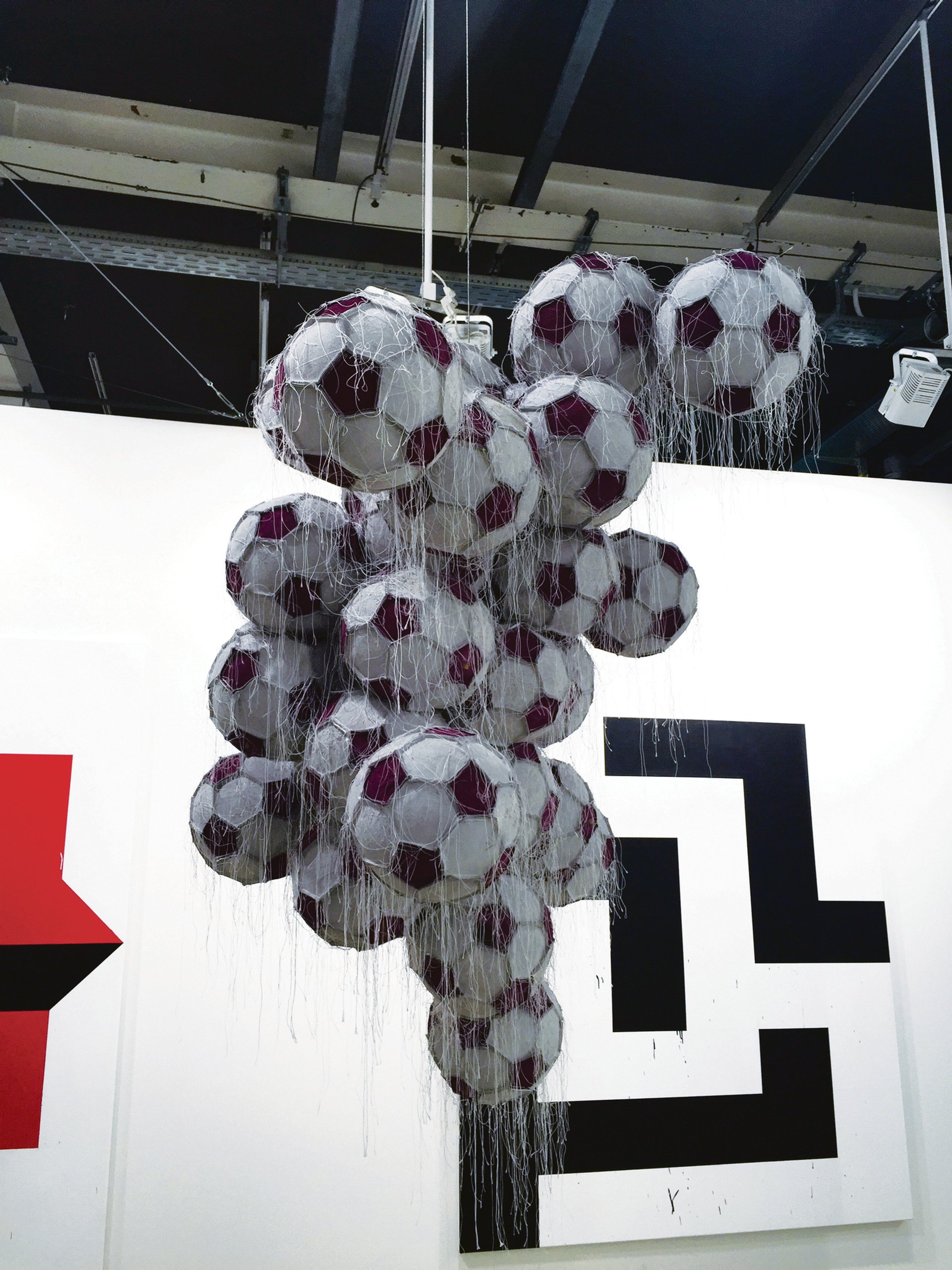 Football fever Emotions are running high on the fair floor over Euro 2016, the international football tournament that has dealers and collectors in a frenzy. Börkur Arnarson, the director of the Reykjavik-based gallery i8, is cock-a-hoop about Iceland’s draw with Portugal on Tuesday. “We are well chuffed,” Arnarson says, pointing out proudly that, “with a population of 331,918, 0.007% of Iceland’s population is playing for Iceland”. But the most fervent fans can be found on the stand of Kerlin Gallery from Dublin, where the staff are just as stoked about the Republic of Ireland’s 1-1 draw with Sweden on Monday. “Every draw is a victory,” declared a jubilant Kerlin director in a rather philosophical vein, prompting a round of singing from the gallery crew, who chanted in unison: “Come on you boys in green! Come on you boys in green!” Passing fairgoers from non-Irish regions looked delighted, if bemused.