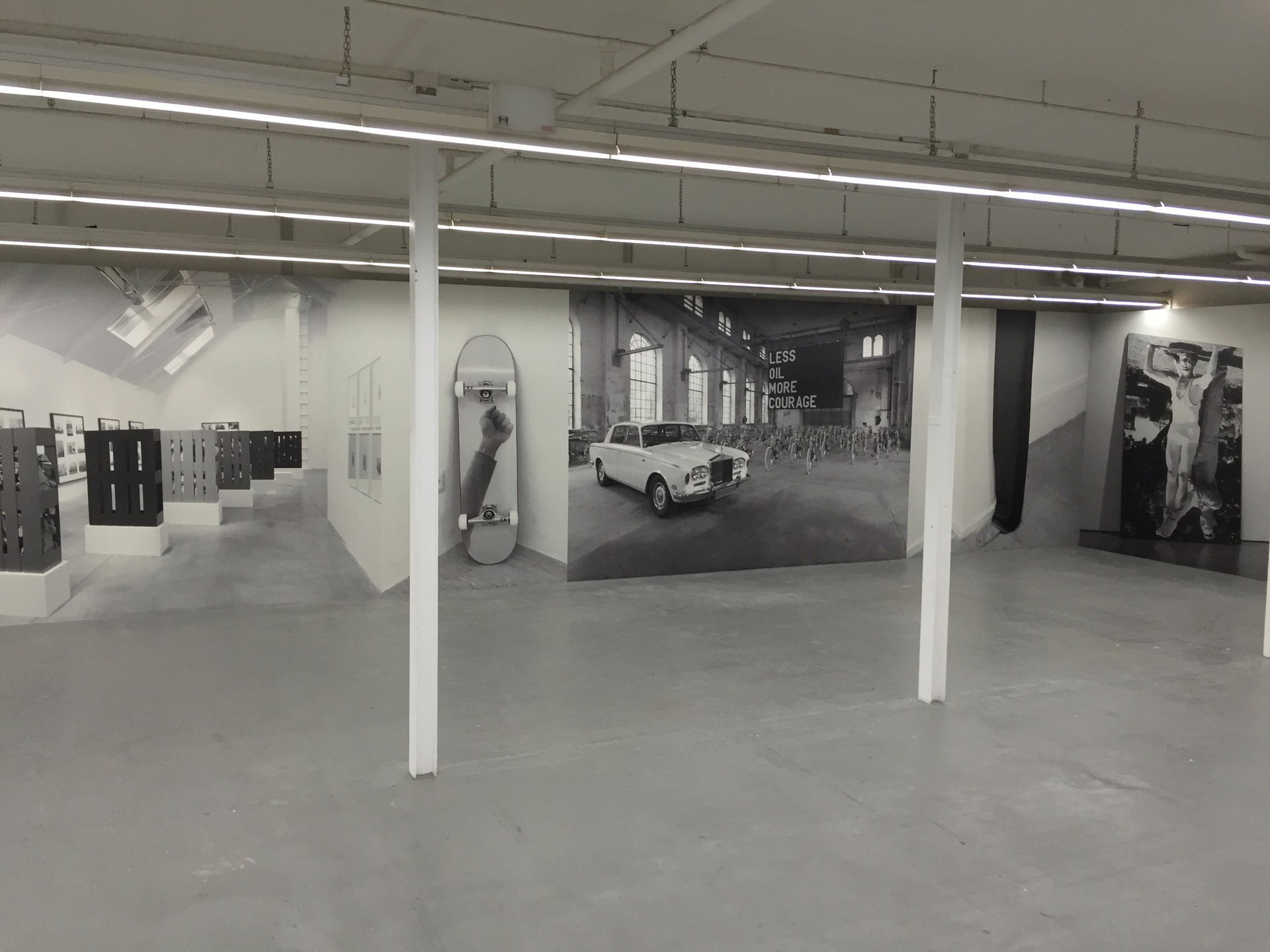 Navel-gazing of the highest order There is no shortage of shows in the Art Basel institutional orbit, but should you tire of those, might an exhibition on exhibitions be of interest? The Kunsthaus Baselland is showing Exhibit Model One, a conceptual meta-exhibition by the UK artist Jonathan Monk that seeks to examine “the conditions of an exhibition”. There are no works in Monk’s presentation, just giant black-and-white representations of installation views from previous shows his work was in, such as Less Is More Than One Hundred Indian Bicycles, at the Kunstraum Dornbirn in 2013. “My show might have the feel of walking through the pages of a crudely photocopied book,” Monk says in the catalogue. (True.) “I’m hoping the lack of objects will allow the viewer to focus on the spaces seen within the space.” Indeed, one comes away with a strong sense of the exhibition aesthetic: pacific, white and idiosyncratic in familiar and clearly defined ways. Surely such a show is not on during Art Basel by accident.