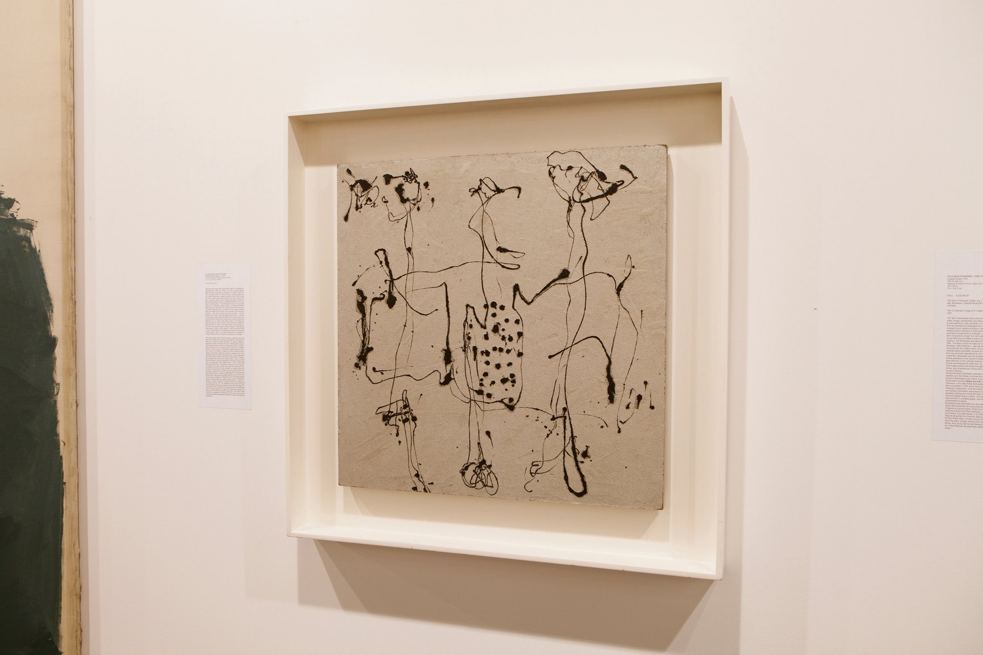 Jackson Pollock, Untitled (Silver Square) (around 1950) “This untitled silver work is from Pollock’s so-called black-and-white period, when he developed figuration out of the drips. He drew three figures on canvas; they are ambiguous but quite likely female figures. His dripping technique is highly controlled. Contrary to what we think about Pollock, his abstract drip paintings were a rather short exceptional phase—but even then, he started his painting process with figuration and then worked against it.”• Washburn Gallery, New York