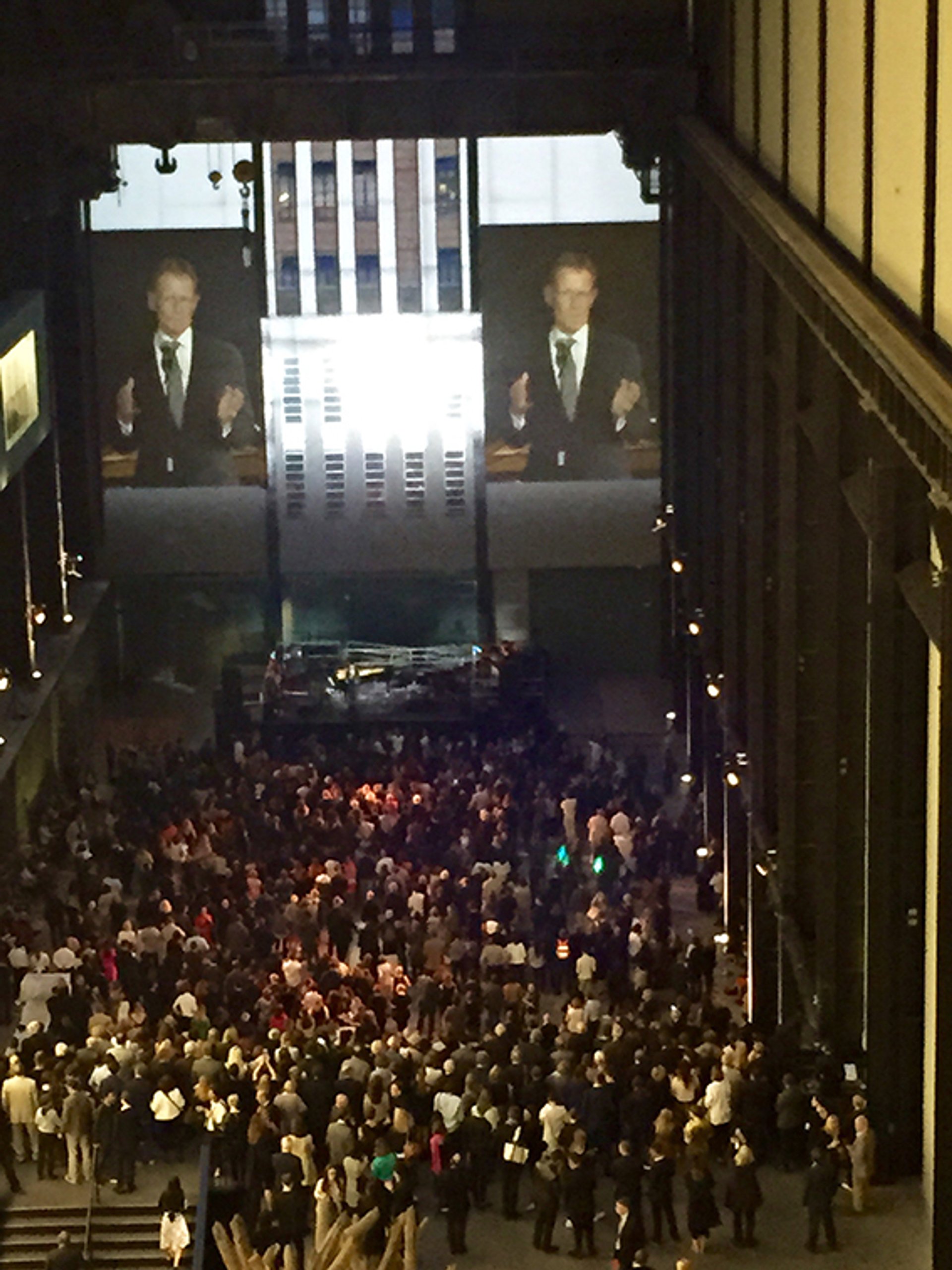 But for many attendees, the high point of the evening was the captivating performance in the Turbine Hall by the London-born, Mercury Prize winning 27-year-old poet and musician Benjamin Clementine, who filled the vast space with his extraordinary sound and presence while at the same time managing to make it seem utterly intimate.