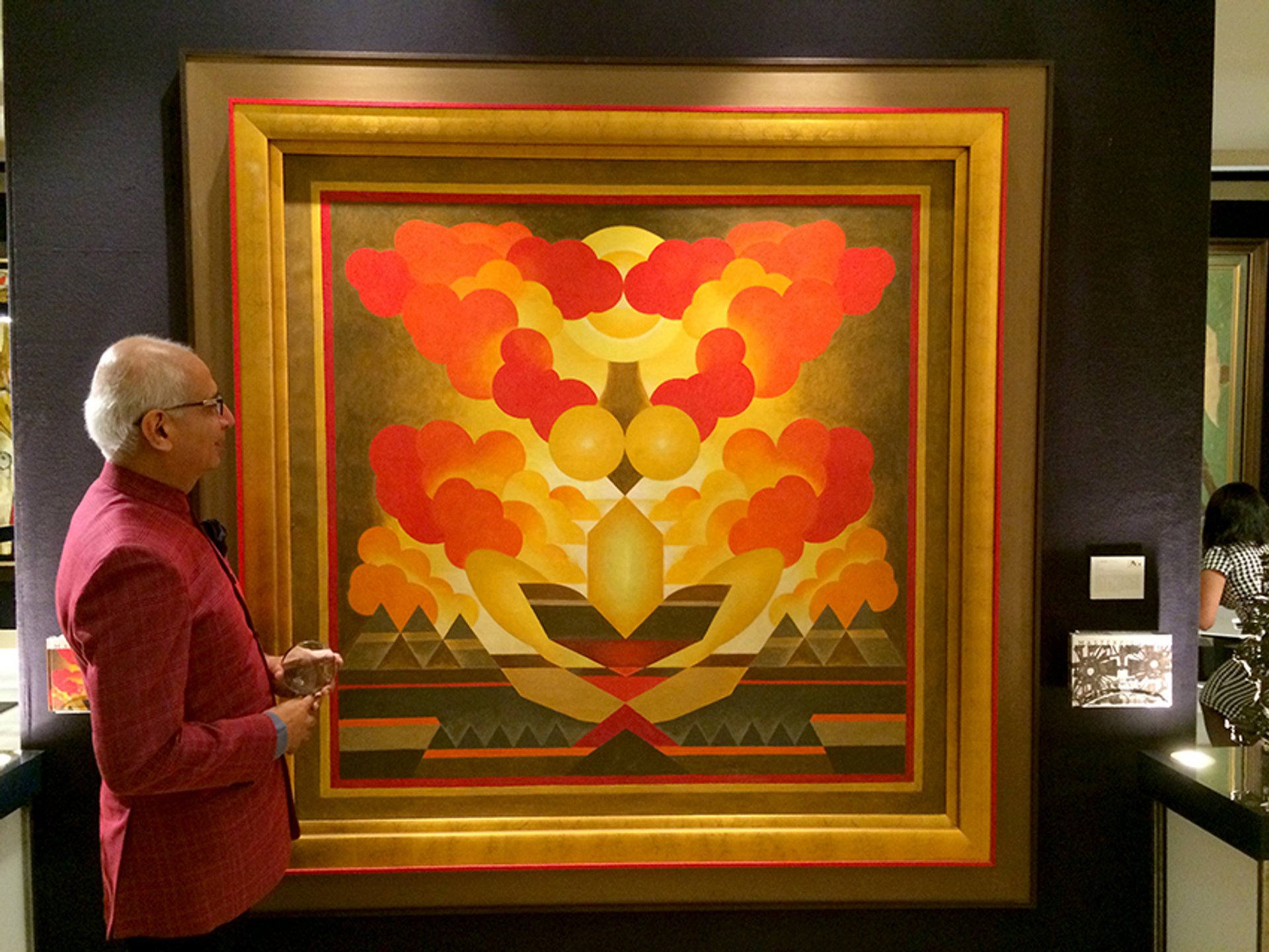 For their first appearance at Masterpiece, DAG Modern, with spaces in New Dehli, Mumbai and New York, is presenting a wide selection of Modern Indian art, from the Benghal school to the Bombay Progressive Artist’s Group, at a wide range of price points. “We’re are in the business of commerce but we also want to educate the public, which is why we’ve put together a scholarly book for each work at the stand,” says the gallery’s head of exhibitions and publications, Kishore Singh. “Our stands are usually bigger than this, and we’ve previously commissioned educational videos for all of the works that we’ve had on display at other fairs.” This large, colourful Modernist work by the Kashmiri, self-taught artist G.R. Santosh applies a geometrical, orderly aesthetic to the Tantric image of a goddess, the fount of creation, and combines the essential male and female principles with vibrant yellow and red tones.