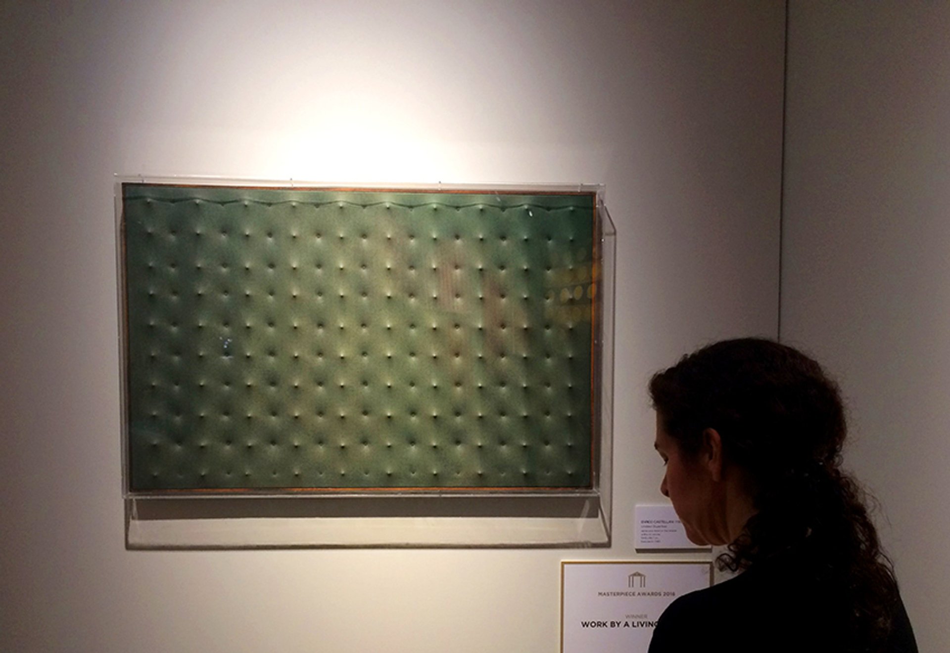 Part of the more recent wave of Italian galleries that have set up shop in London’s Mayfair, M&L are taking part in the fair for the first time with a presentation of works by post-war Italian artists, including Michelangelo Pistoletto, Lucio Fontana and Enrico Castellani. This green wall piece by Castellani, with its recognisable, monochromatic stretched canvas, won this year’s Masterpiece award for best work at the fair by a living artist and was sold almost immediately on opening day. “It’s a particularly rare and early work,” says Matteo Lampertico, one of the gallery’s partners, “it has a much softer appearance and colour, before Castellani started using those brighter, more ‘Pop Art’ tones that we are now familiar with.” It has also never been seen on the market before.