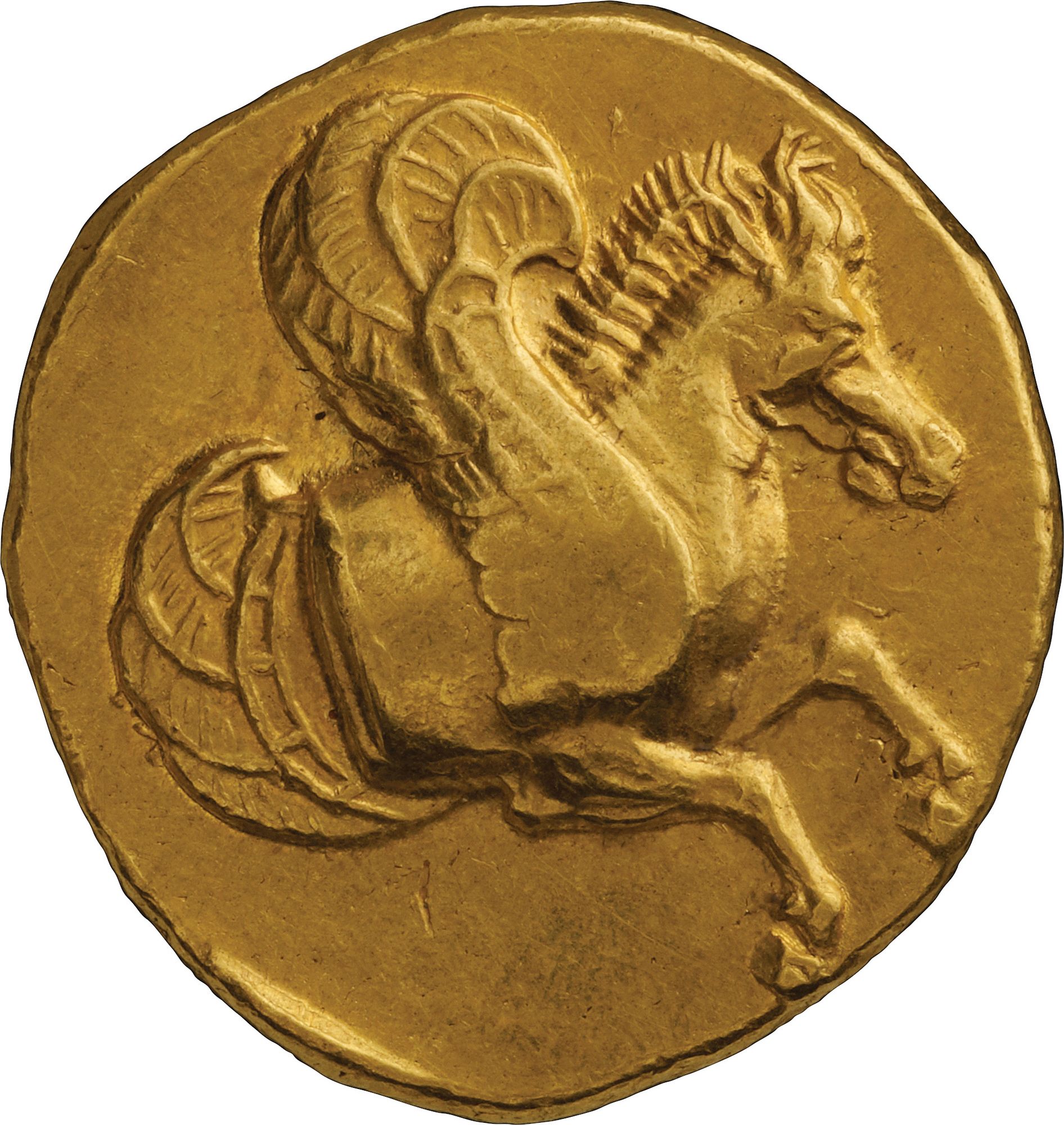 Gold stater of Lampsakos (394-350BC) Horses, Rulers and Victory in the Art of Ancient Greek Coinage, Kallos Gallery, London, until 29 July