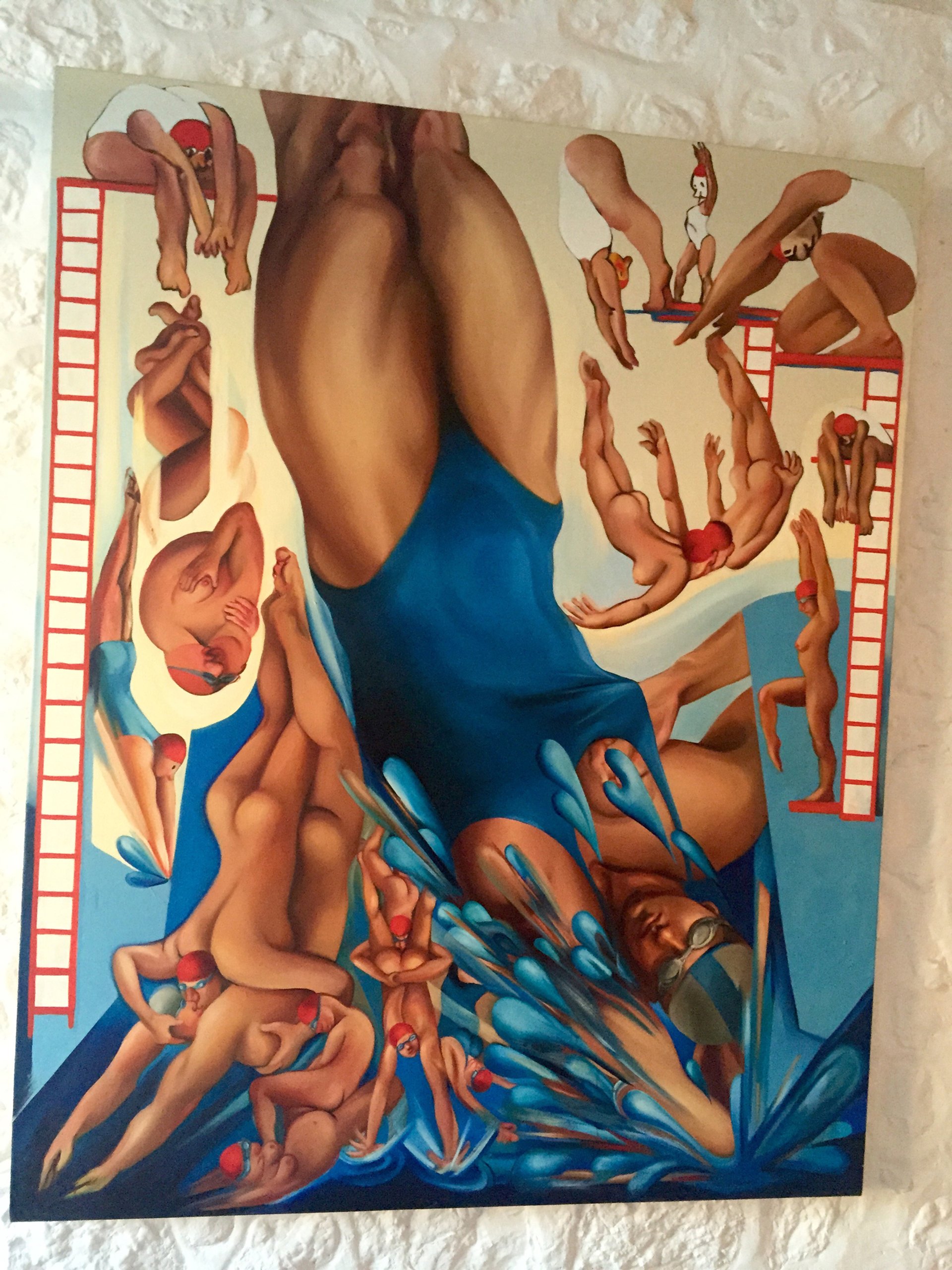 This year, the artist was the New York-based painter Nicole Eisenman who, following on from her recent New Museum survey, was showing a clutch of her forceful figures to a crowd that included the Royal Academy’s Tim Marlow, Frieze co-editor Jennifer Higgie, National Portrait Gallery director Nicholas Cullinan, the Steidlich’s Beatrix Ruf and Manchester Museum and Galleries power couple Nicholas Merriman and Maria Balshaw. Along with more recent renditions of a huddled, purple, bug-eyed insomniac and—my favourite—a fabulously elemental mask-faced Northern California Potter Woman (2015), works on show included Divers (1998), an earlier canvas depicting plunging, libidinously intertwined female swimmers.