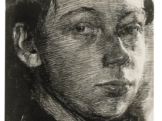 Its scope is wide, the British portrait of the past century and more, the earliest example a tiny etching by Sickert of a young lady in a cocked hat, from 1894, the latest —two self-portraits, by Anthony Eyton and Cherry Pickles, both from 2013. Again, the names betray that instinctive preparedness to look beyond the fashionable and familiar. But for him unfamiliarity or rarity in themselves are never the point: each piece, however slight, must rest its justification in large part upon its technical merit. The craft, to Lambirth, is a necessity. Whatever it is, it must be well made and fully resolved within the terms intended. Perhaps the most haunting work in the show is just such a one, a large portrait etching (1971) by Peter Coker of his only son, who died tragically young. Not only does it demonstrate the most formidable technical command, but it is possessed of a timeless authority that transcends technique, worthy of any master.