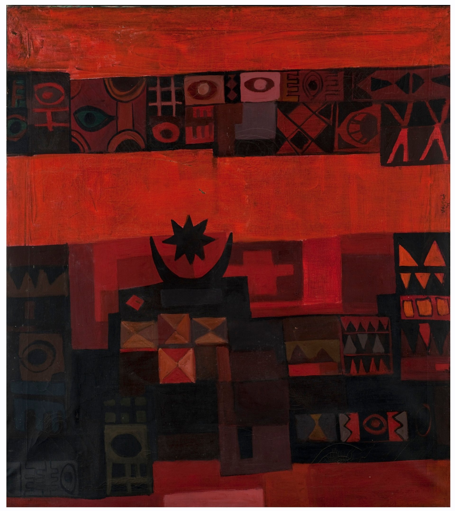 Alongside 90 works from the QM collection, the exhibition will feature loans from 17 private collections and four institutions, including the Barjeel Foundation, Sharjah; Centro de Arte Moderna Fundação Calouste, Lisbon; Kinda Foundation, Riyadh; and Tate Modern, London. The Tate is lending one of Al-Azzawi’s most renowned works, the vast mural Sabra and Shatila Massacre (1982-85). Often likened to Picasso's seminal painting Guernica (1937), Al-Azzawi’s painting depicts the massacre of Palestinian refugees in 1982 during the civil war in Lebanon.