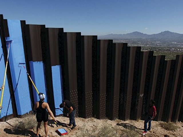 His wall was not, he said, originally inspired by the presidential candidate Donald Trump, but it is resolutely anti-Trump. “This project has been in the making for a couple of years, before he surfaced as a politician, but it goes head to head with everything Donald Trump represents: fear, racism and the hatred of immigrants,” the artist said when reached by phone.