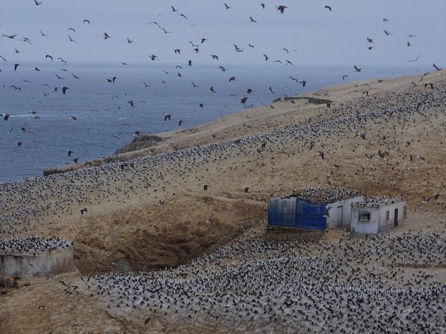 But although he shows the labourers scooping up the malodourous commodity in their bare hands, manually building epic pyramids and ziggurats of the bagged-up poop, there is little sense of the punishing conditions in which this valuable commodity is produced. This was in great part because the Peruvian government, who own the islands and manage the workforce, would not permit the artist and his crew to film their accommodation or speak to any of the workers. “If we’d been allowed to talk to them the film would have been very different,” Lê told me, adding the grisly detail that the worker’s hardship is amplified by the fact that the island is crawling with ticks. Apparently these were introduced in the 19th century when cows were brought in as a food and milk supply. And when the cows left, the ticks didn't. Unfortunately, the birds haven’t developed a taste for them but Lê is threatening that these deeply unappealing bugs may appear in a future film, whether or not he is allowed to speak to the workers.