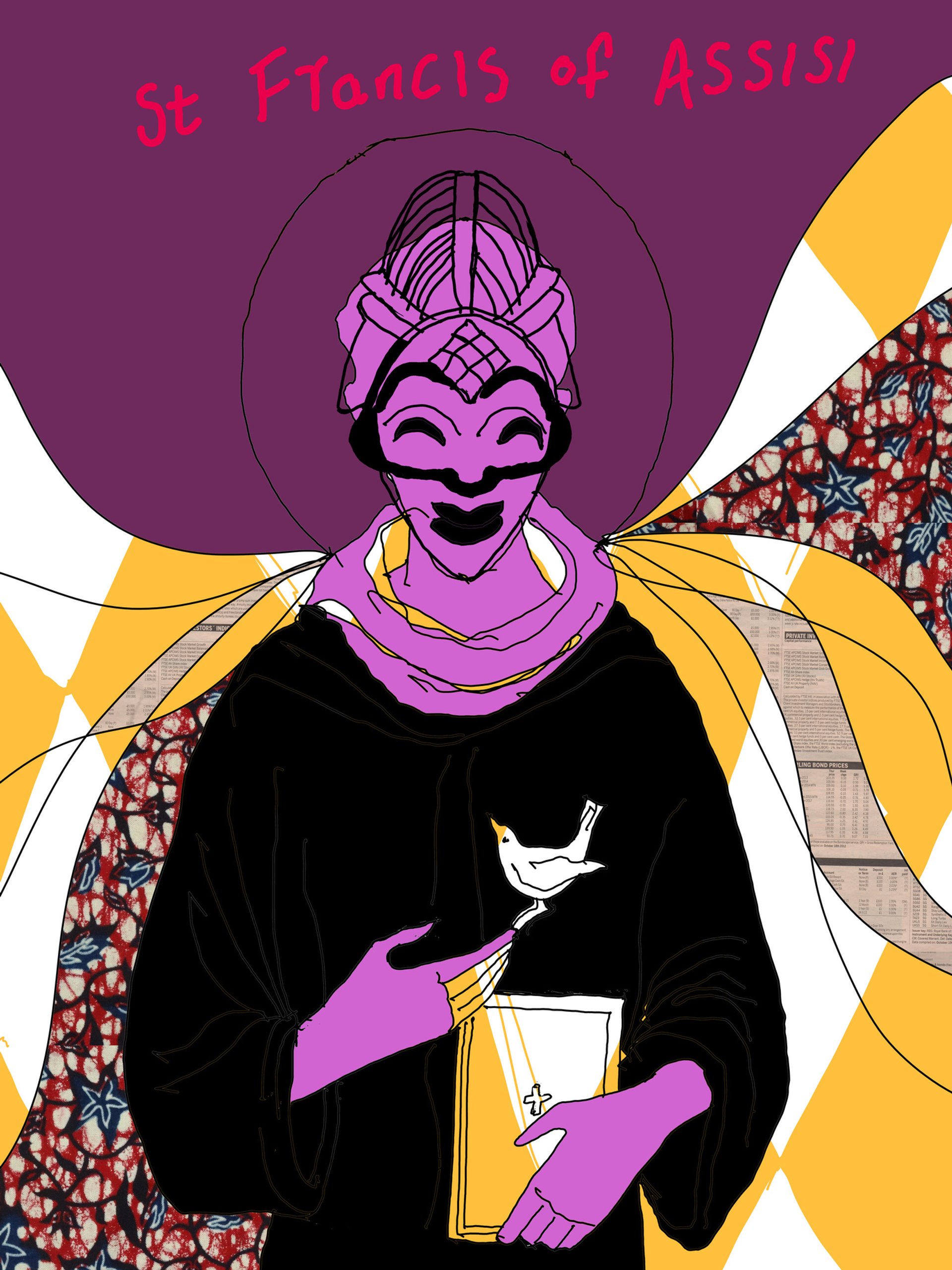 A series of prints that fuse drawings of European saints with batik patterns, African ritual masks and extracts of stocks and shares from the Financial Times will also go on show. “First of all [I] think about picture making itself: the history of Modernism and the aesthetic of the mask in Modernist painting. So we are going back to Picasso. And then taking that signifier of religious ritual, which is the mask, and overlapping one religious symbol with another religious symbol,” Shonibare says.