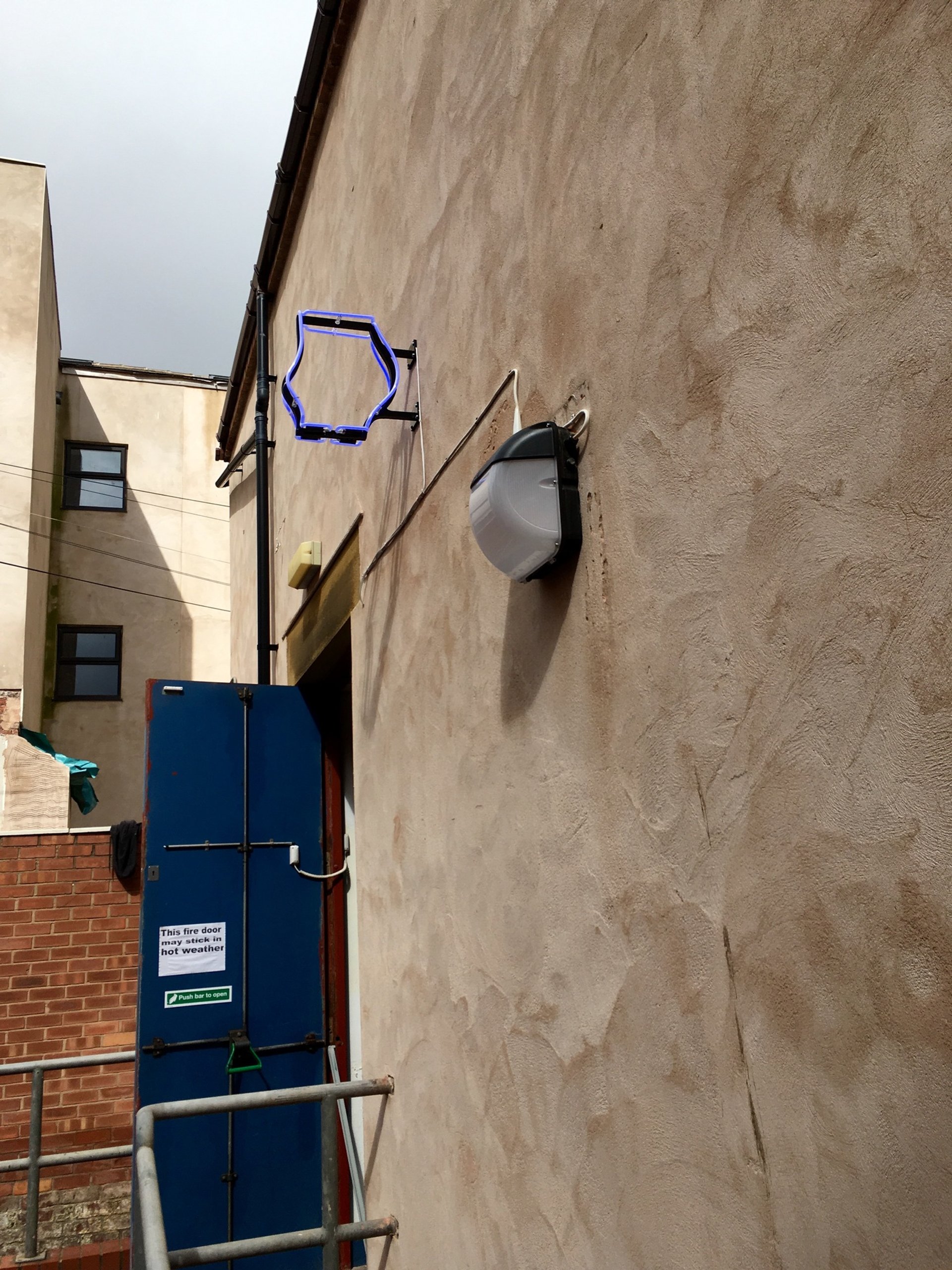But it wasn't all conceptual chin stroking, with the wide range of works on show also containing a number of oblique references to Blackpool’s time-honoured status as a centre for saucy seaside fun. These include Ron Haselden’s perky pink neon ladder, which in the next couple of days will be erected next to the towns famous drag cabaret bar Funny Girls; and Prem Sahib’s gently (or heavily) “breathing” neon, and his slyly subversive Bump. The latter is a silhouette of a pair of underpants installed above the gallery’s back entrance where, viewed from the street, it shines out from above the wheelie bins, looking very much like the sign for an illicit nightclub. Given Blackpool’s reputation for hedonism, the Grundy may have to prepare itself for some very late night clientele…