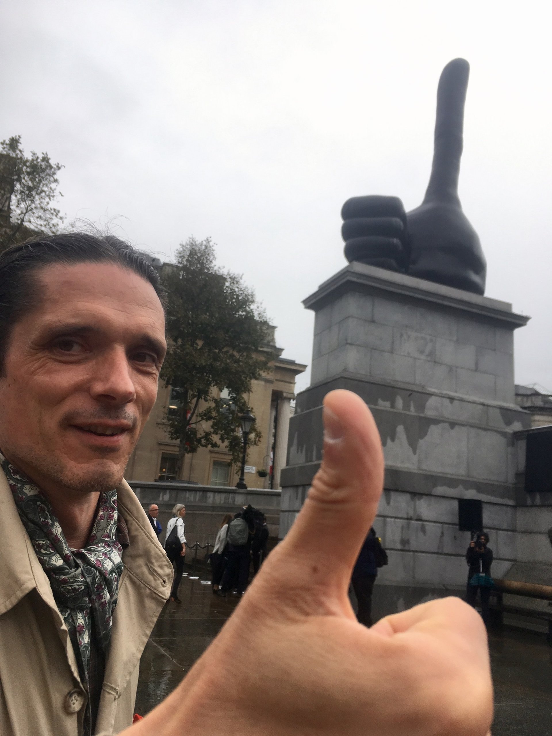 It may have been chucking it down but spirits remained resolutely high at this morning's (29 September) unveiling of David Shrigley's giant bronze thumbs-up sculpture on the Fourth Plinth in London’s Trafalgar Square. The seven metre elongated thumb has the upbeat title of Really Good. The artist informed the damp gathering that the work is about the idea that not only art, but also all of us can—and should—"make the world a better place".