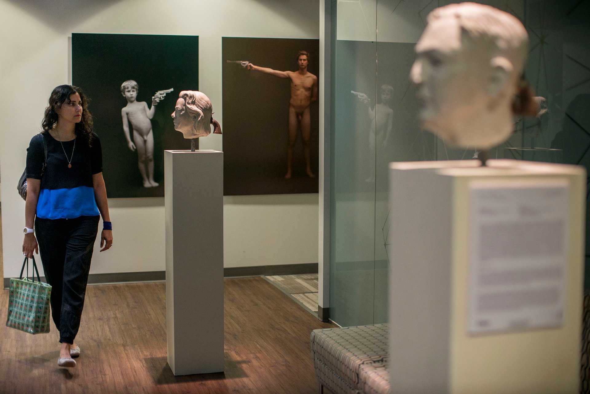 Instead, Ferrara has decided to show photographs of the works in the rotunda and display the originals at the nearby New America Foundation, a think tank a few blocks from the White House. He also agreed to show only a portion of the exhibition’s most controversial work, Neil Alexander’s Growing Up in a Gun Culture, My Son (1996-2014). Alexander photographed his son naked and wielding a gun as a child and then 18 years later, as a young adult. The images on display in the Senate building show the boy only from the waist up.